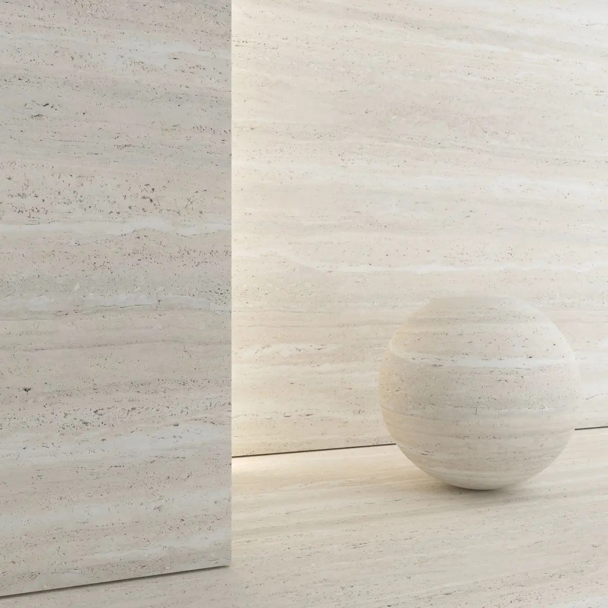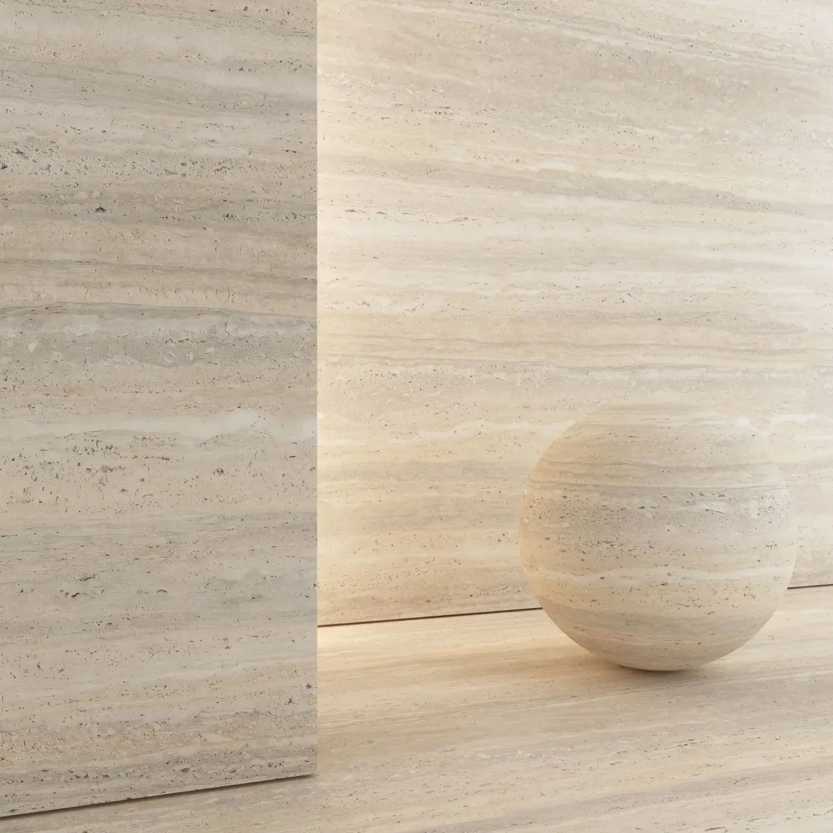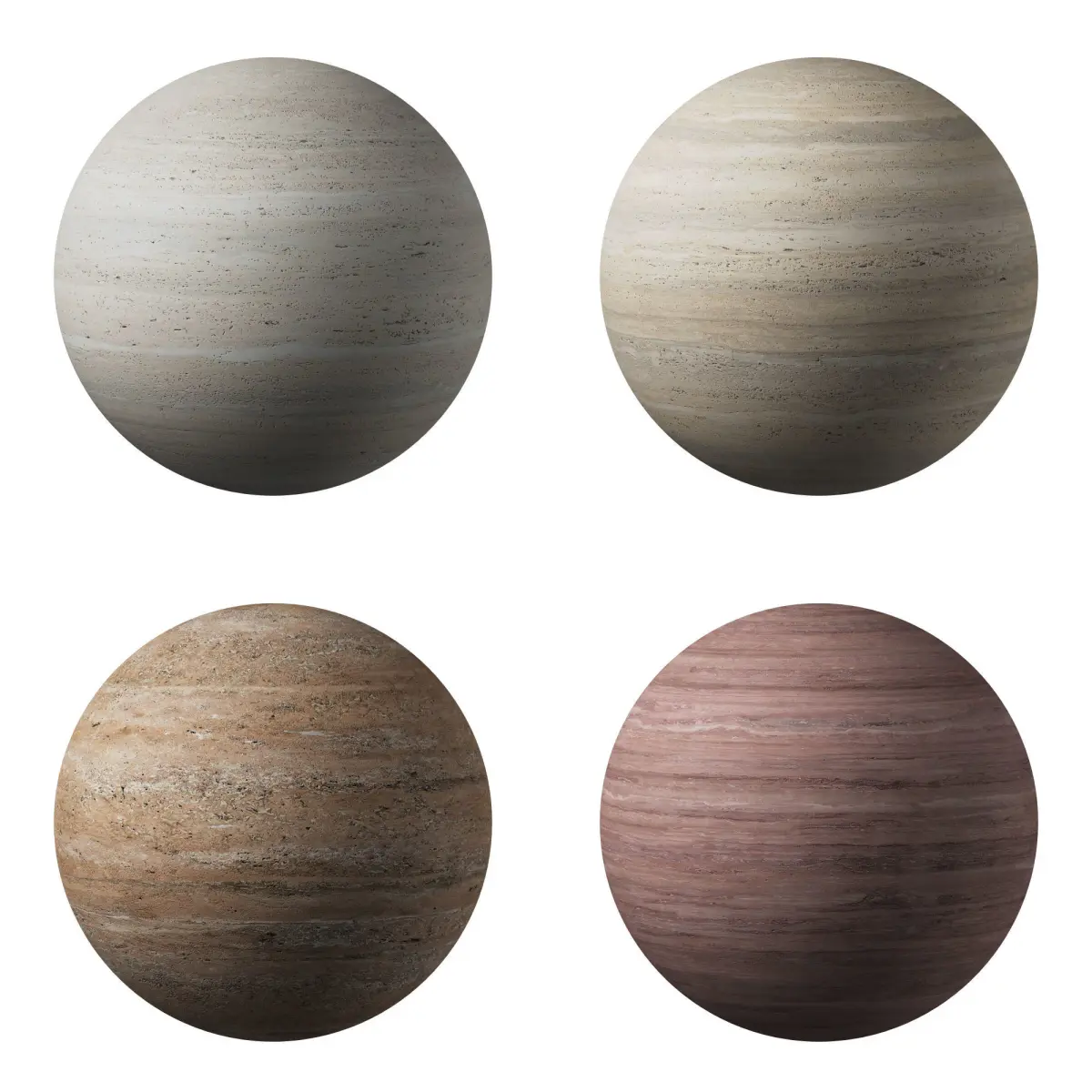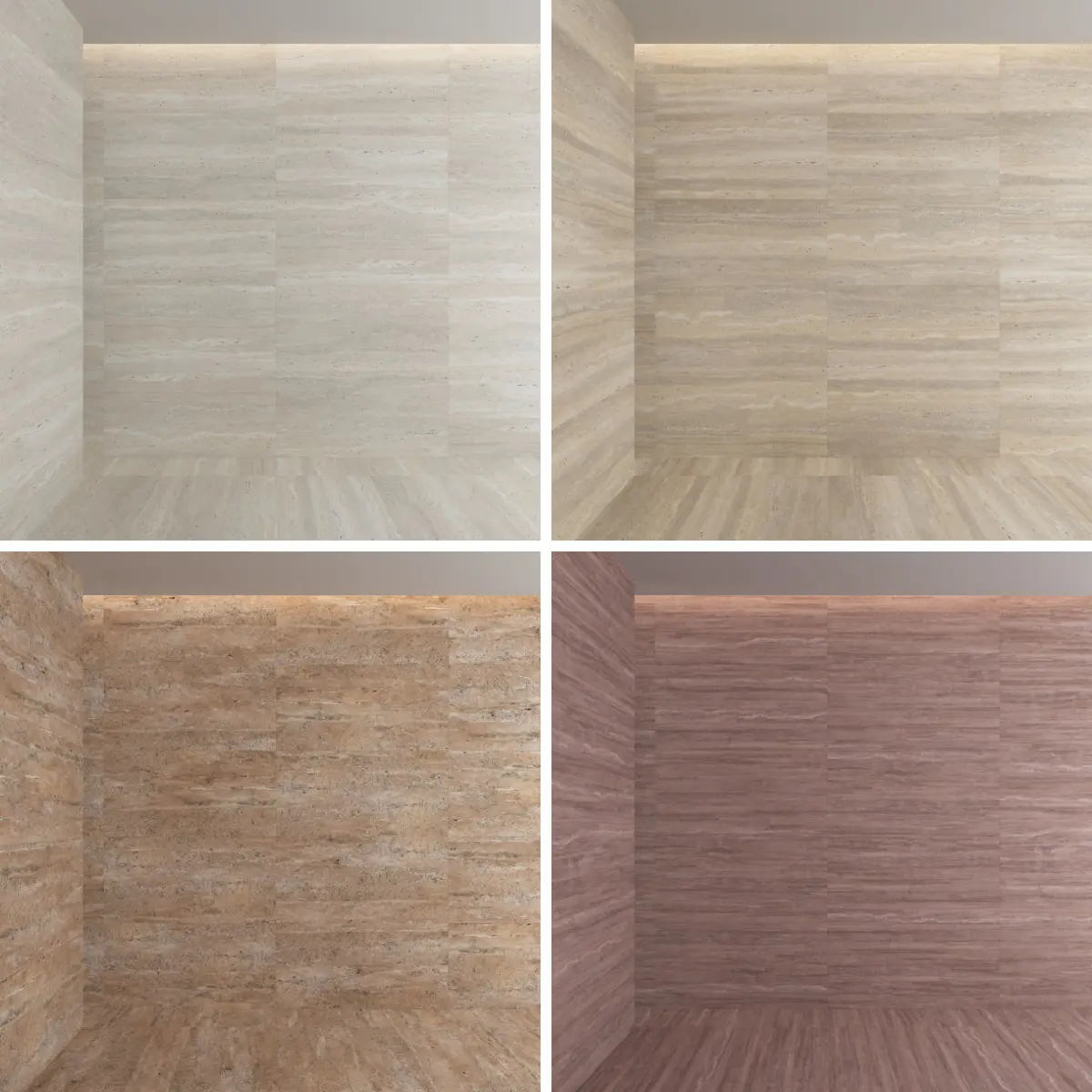 4 Travertine materials and 3D model of tiles of different sizes: