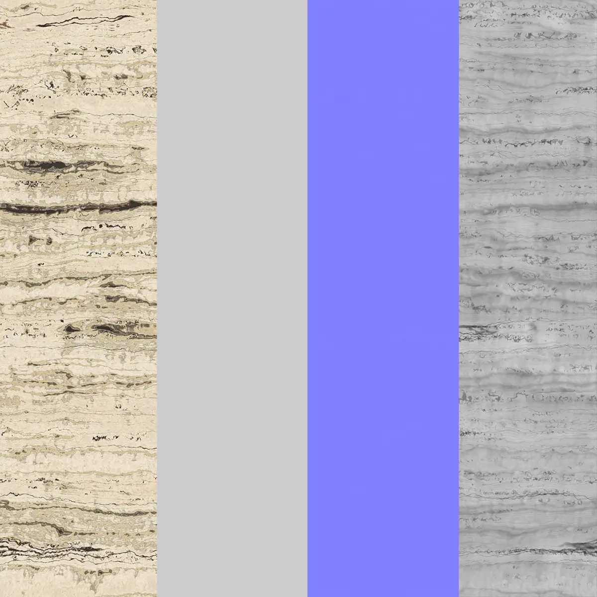 Travertine Vein Cut Stone PBR Metallic Material (Blender Cycles, Arnold, Cinema 4D, Unreal, Unity): Albedo, Metallic, Roughness, Normal, Displacement