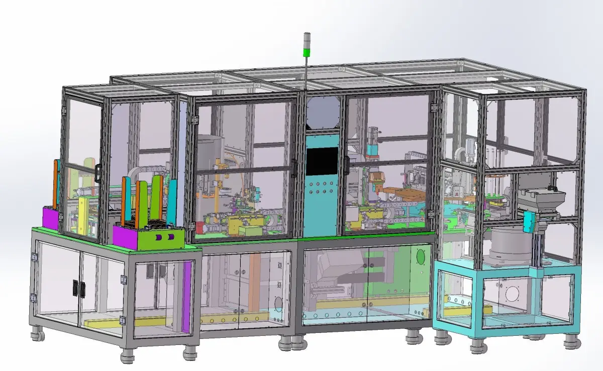 Tray curing automatic loading and unloading machine, automatic UV dispensing and CCD detection integrated machine design model, UV dispensing time glue size thickness, glue speed, glue time, stop glue time can be set parameters, the amount of glue is stable, no leakage of glue. The equipment contains a variety of institutions such as point glue, curing, loading and unloading machine, assembly line and so on, which is a good reference in the design. **************************************