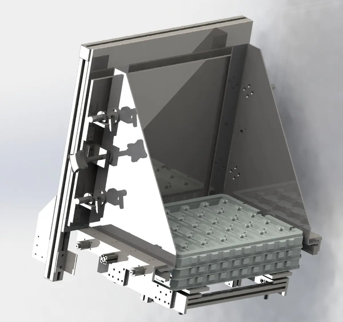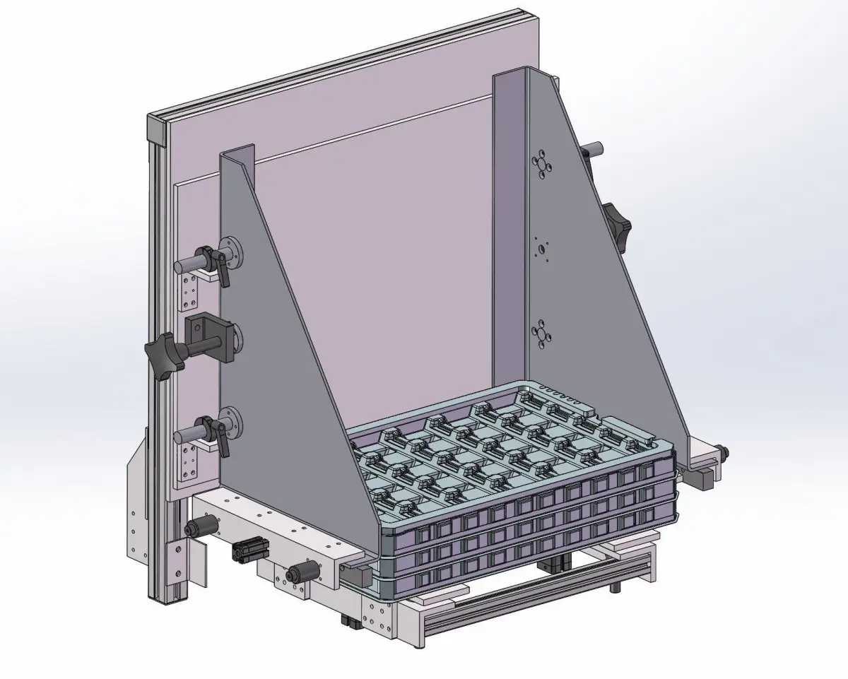Tray loading mechanism, which uses the dividing mechanism of multi-layer Tray to grab the whole pile of materials and leave a Tray on the work tablemechanism include