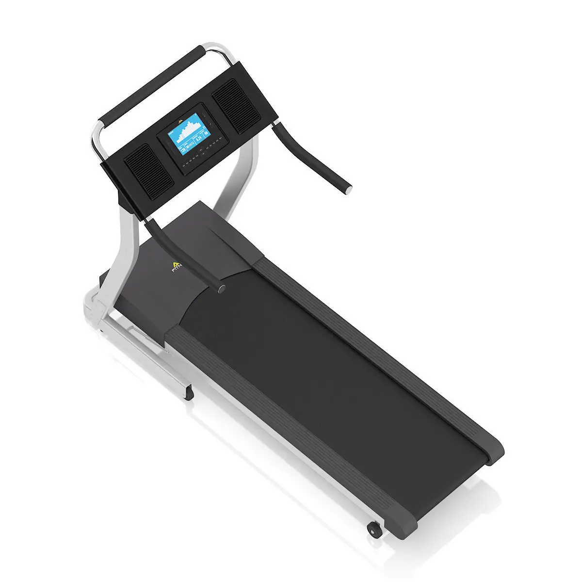 3d model of black and silver treadmill with computer.