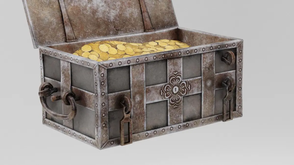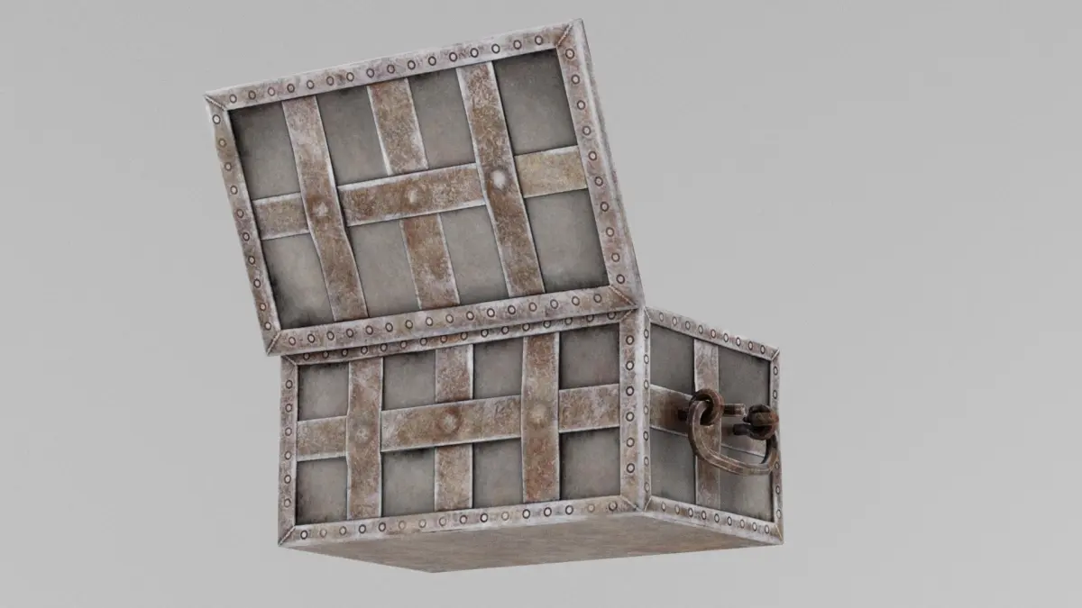 Treasure Chest 3D Model A classic Treasure Chest designed with a sturdy wooden frame and reinforced with metal bands and ornate corner brackets. The lid features intricate carvings and a functional hinge mechanism. Rendered with 4K textures, the model showcases realistic wood grain, aged metal, and subtle wear and tear, giving it an authentic, weathered look. Available in Blend, FBX, OBJ, and DUF formats, this model is perfect for adventure scenes, treasure hunt games, or fantasy-themed environments.