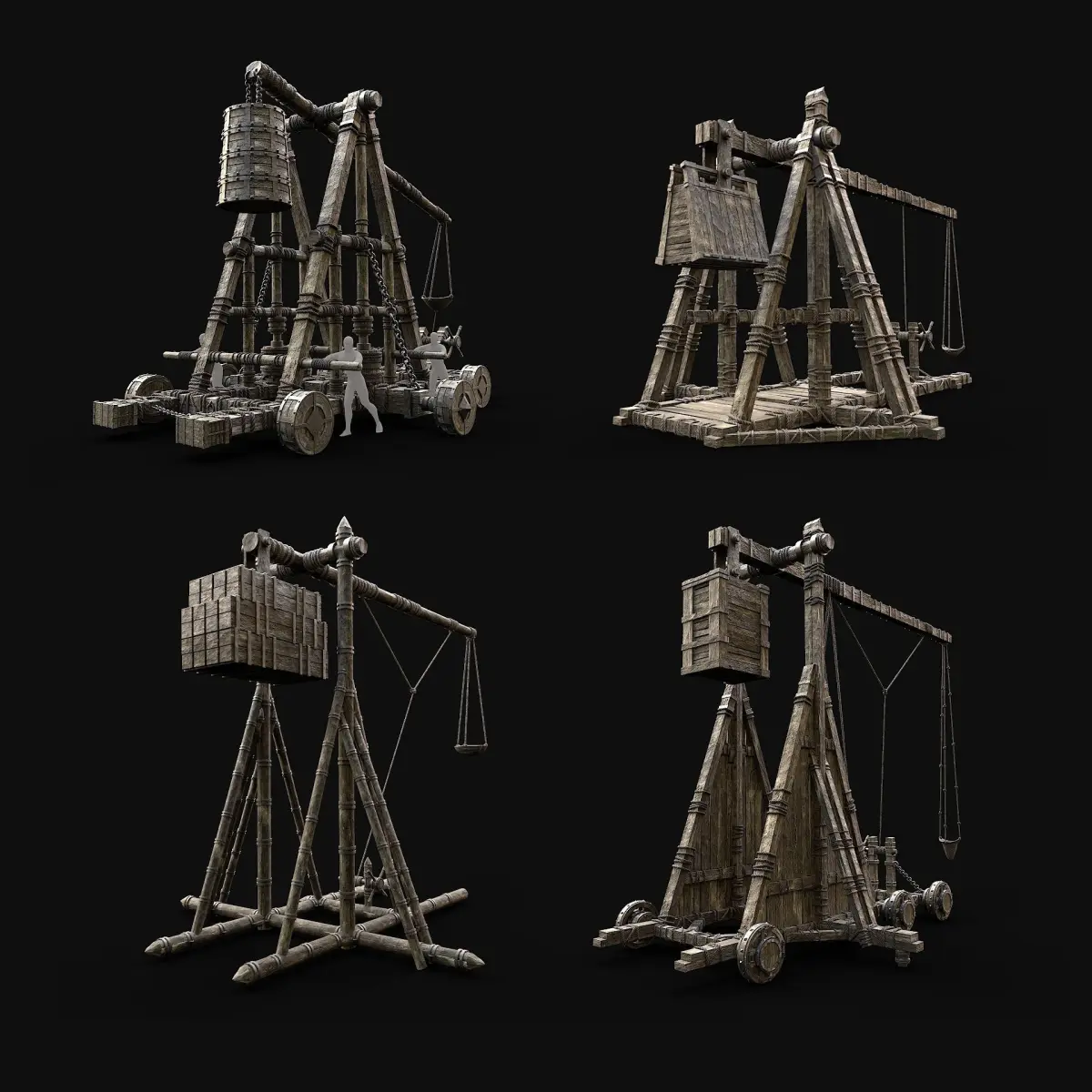 - Next gen, AAA quality, 4 game-ready models of medieval trebuchet siege engine.