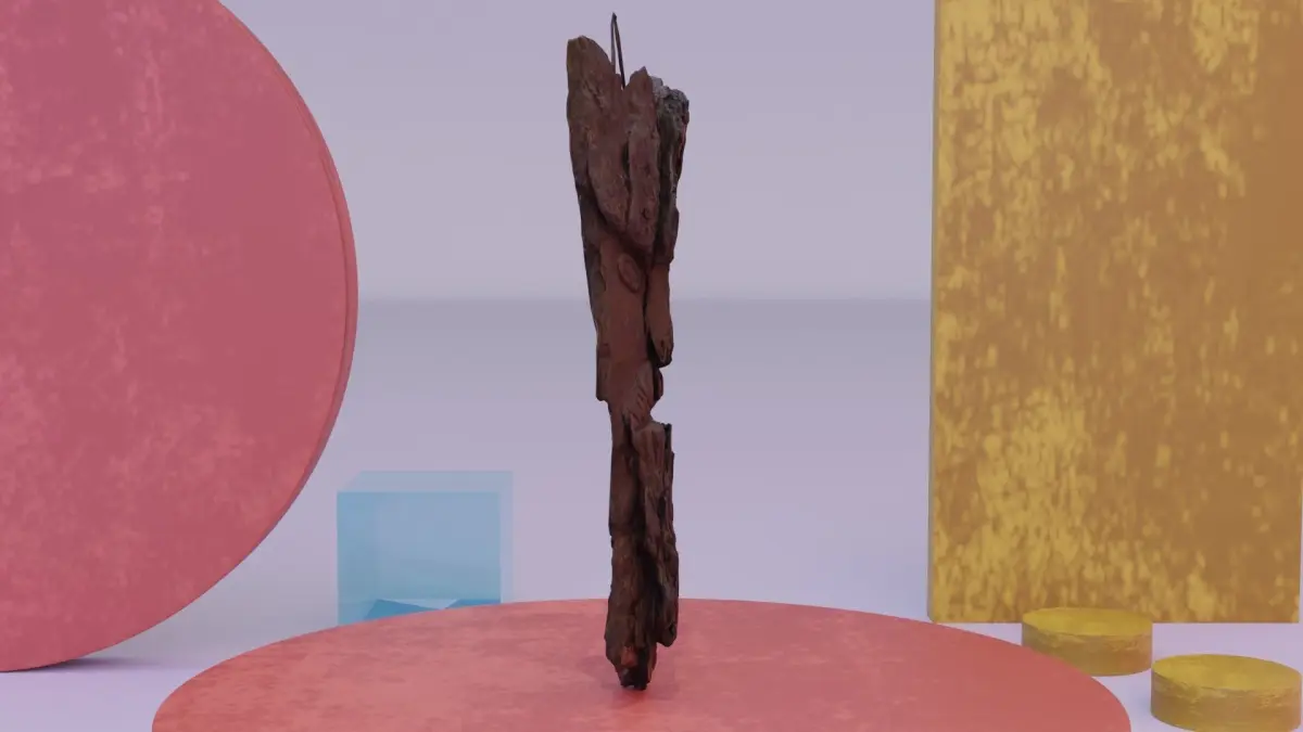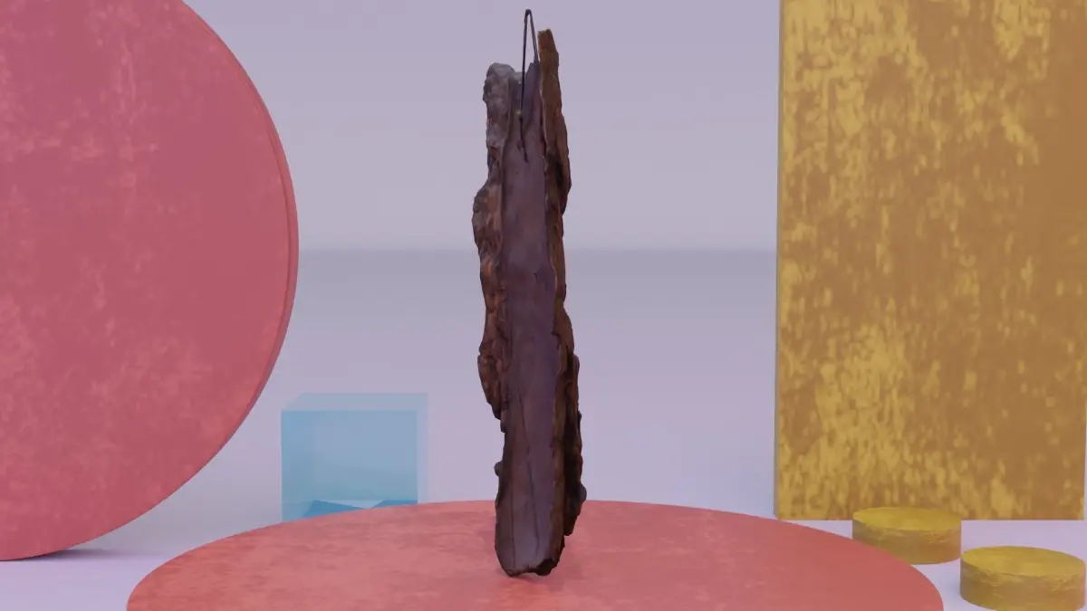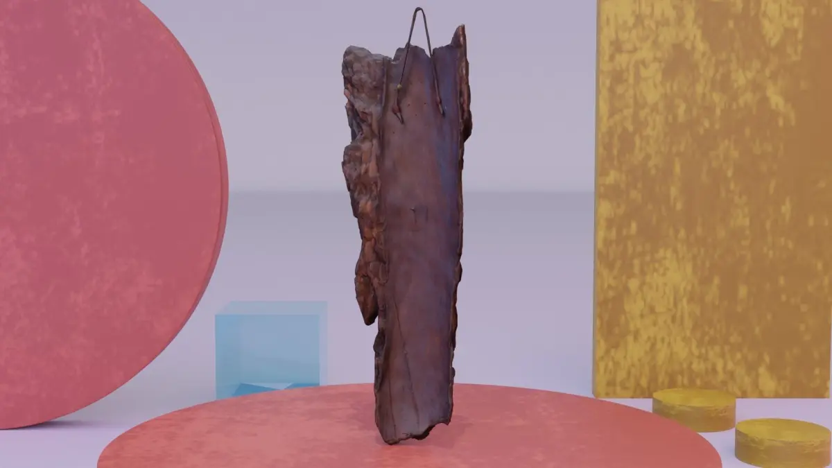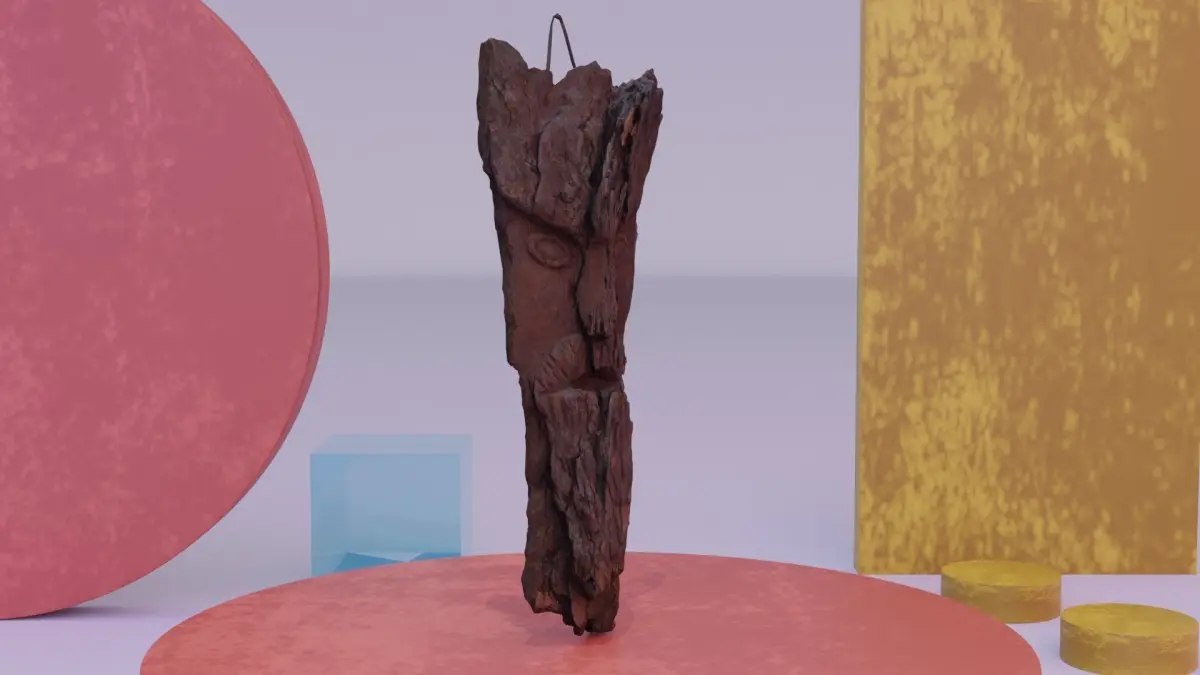 This is a photorealistic 3D model of the handmade tree bark mask.