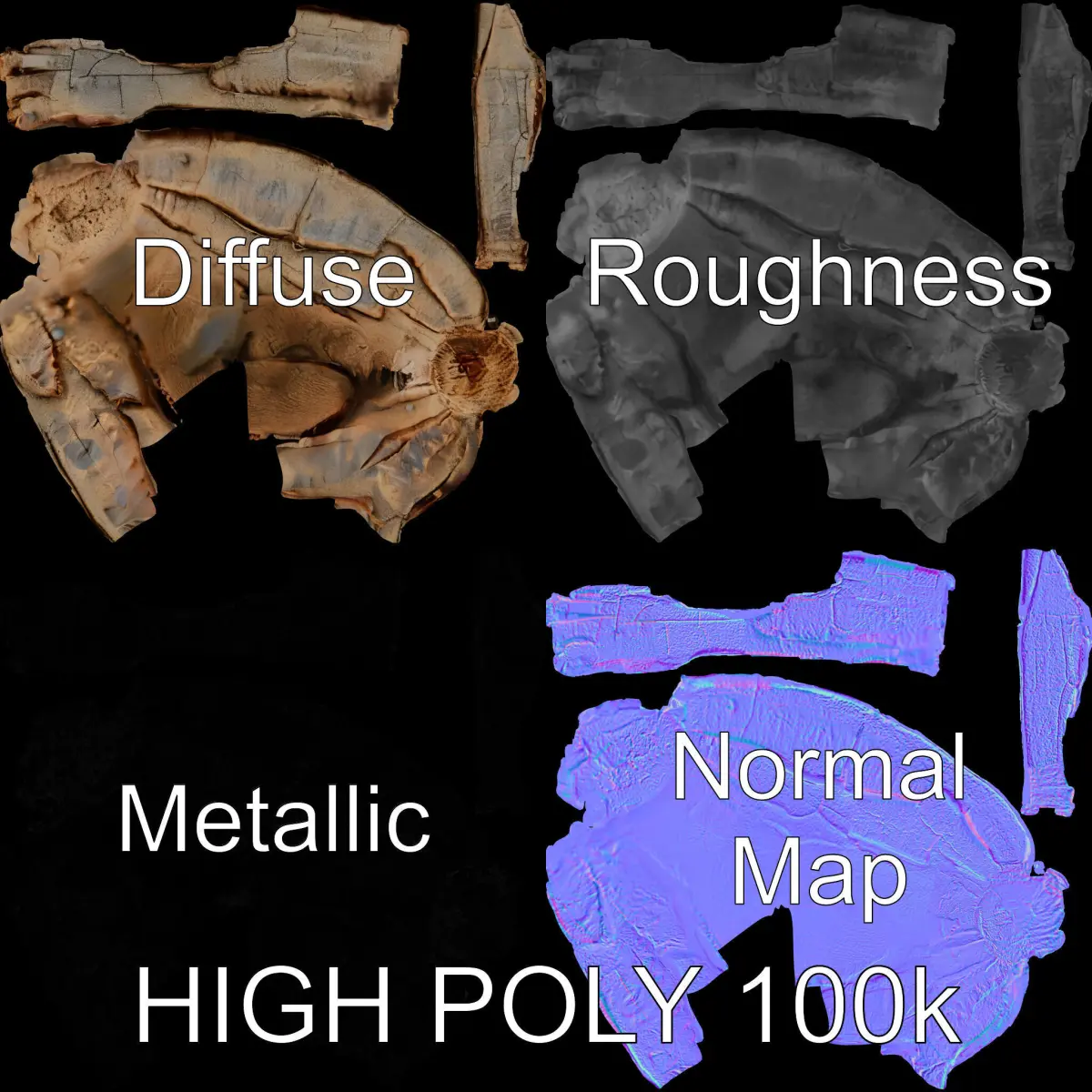 The model uses PBR textures including Diffuse, NormalMap, and Reflection/Roughness/Metallic, ensuring high-quality rendering in any modern engine. All models are unwrapped without overlapping UVs, and textures are provided in 4096*4096 resolution for maximum detail.