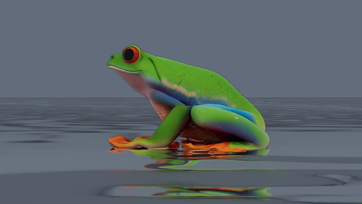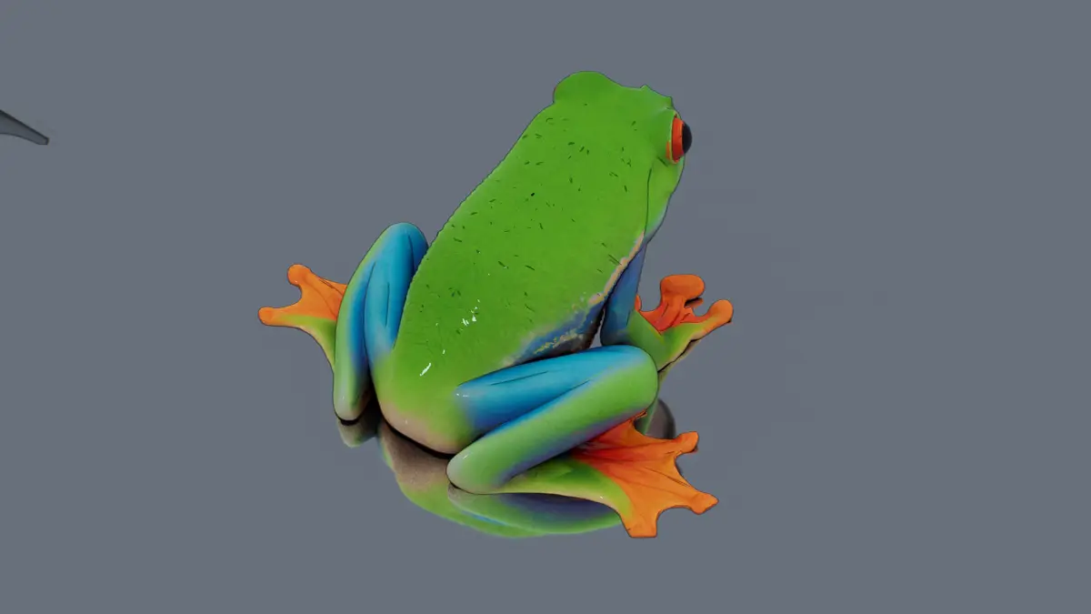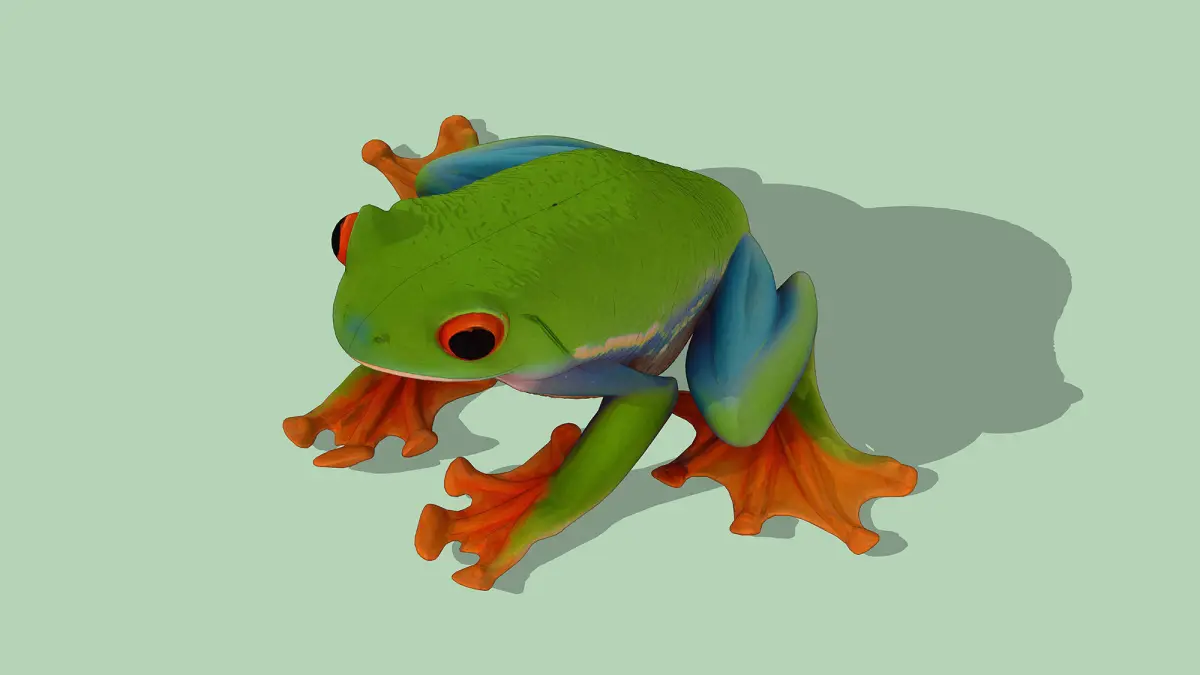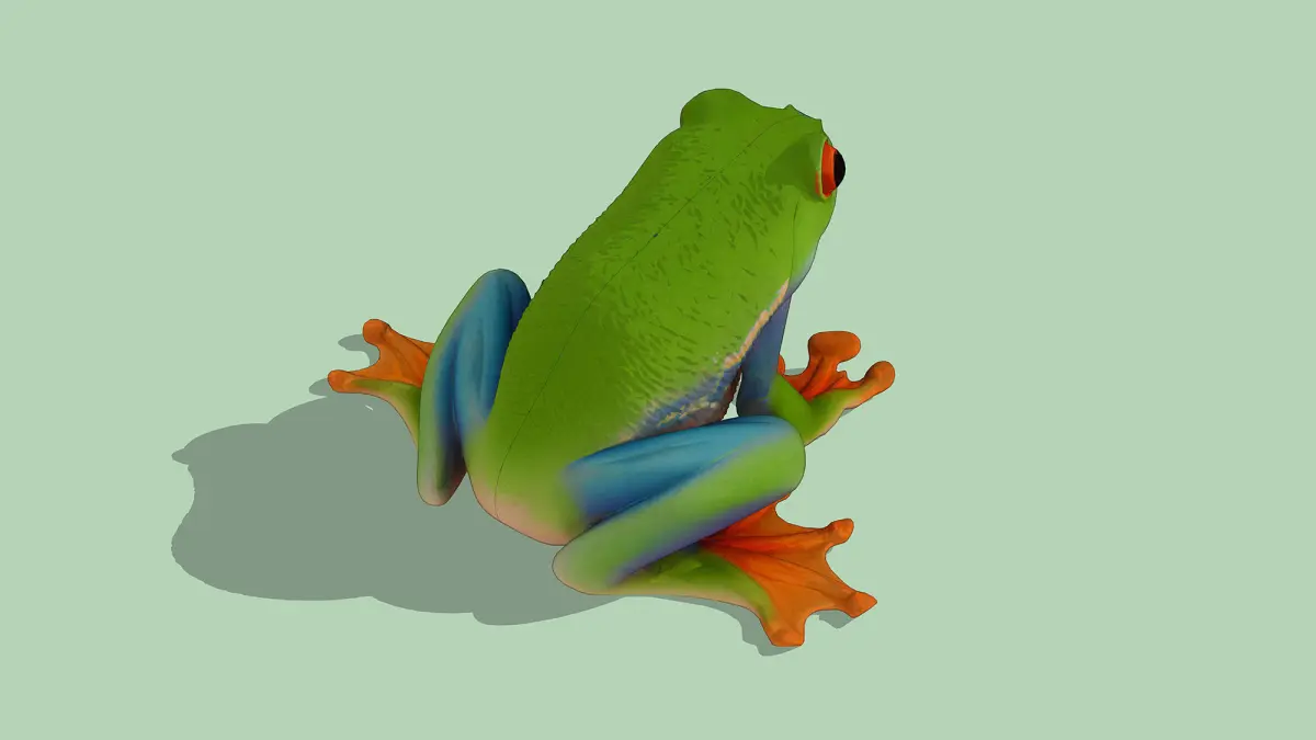 This 3D low-poly model showcases a vibrant tree frog, featuring a striking green body with blue accents and vivid orange feet. Designed with a minimalist yet detailed approach, the model captures the essence of the frog's natural beauty while maintaining a lightweight structure ideal for gaming, animation, or educational purposes. The smooth shading and subtle shadow enhance its visual appeal, making it a versatile asset for various creative projects.