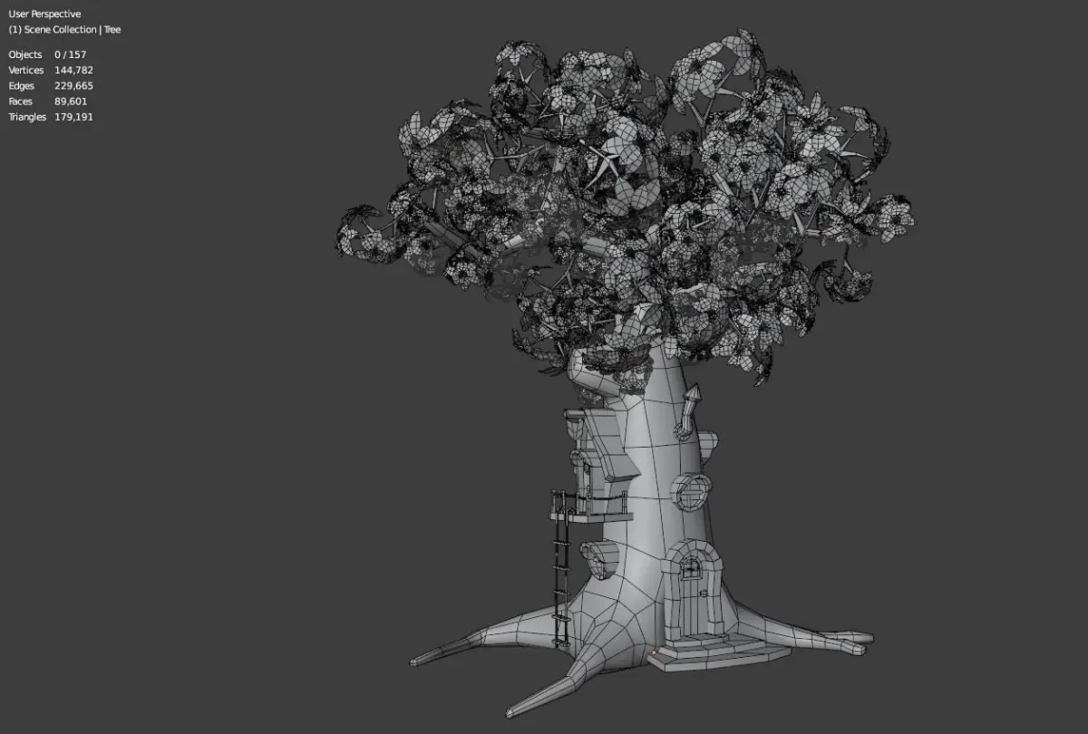 Polygon Main tree trunk : -faces : 2033 -triangle : 4055