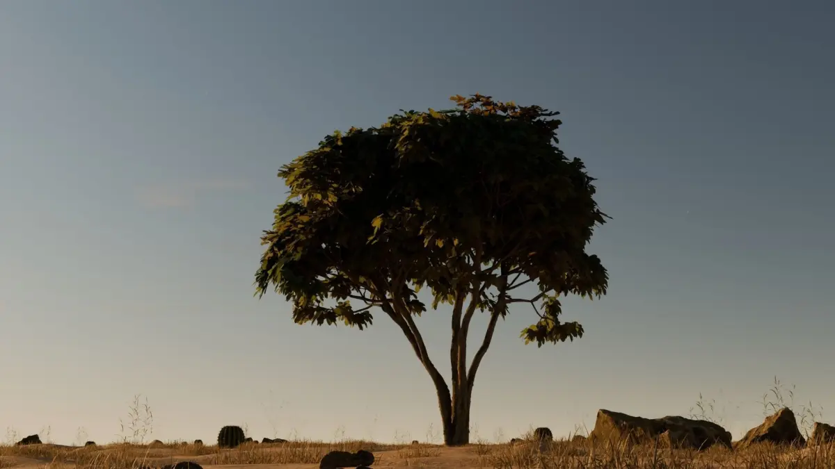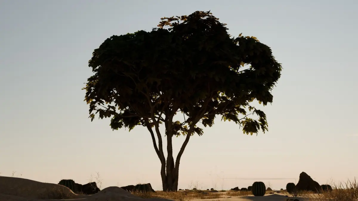 A wonderful 3D model of a tree in the middle of the desert