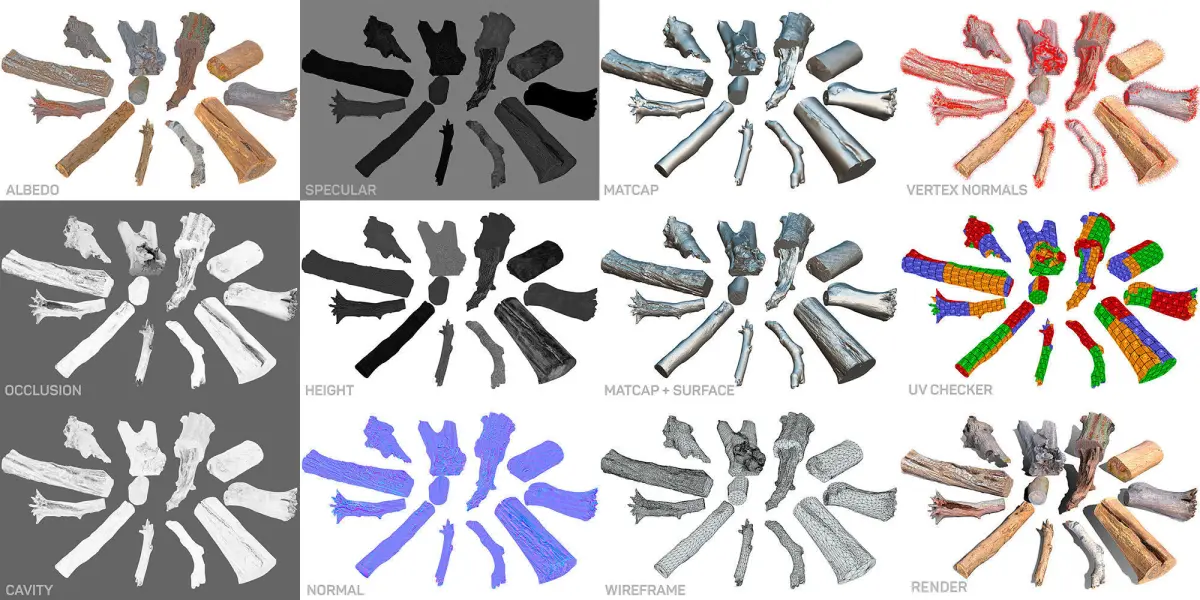 Photorealistic Logs low-poly 3D models.Based on a real-world photoscanned objects.