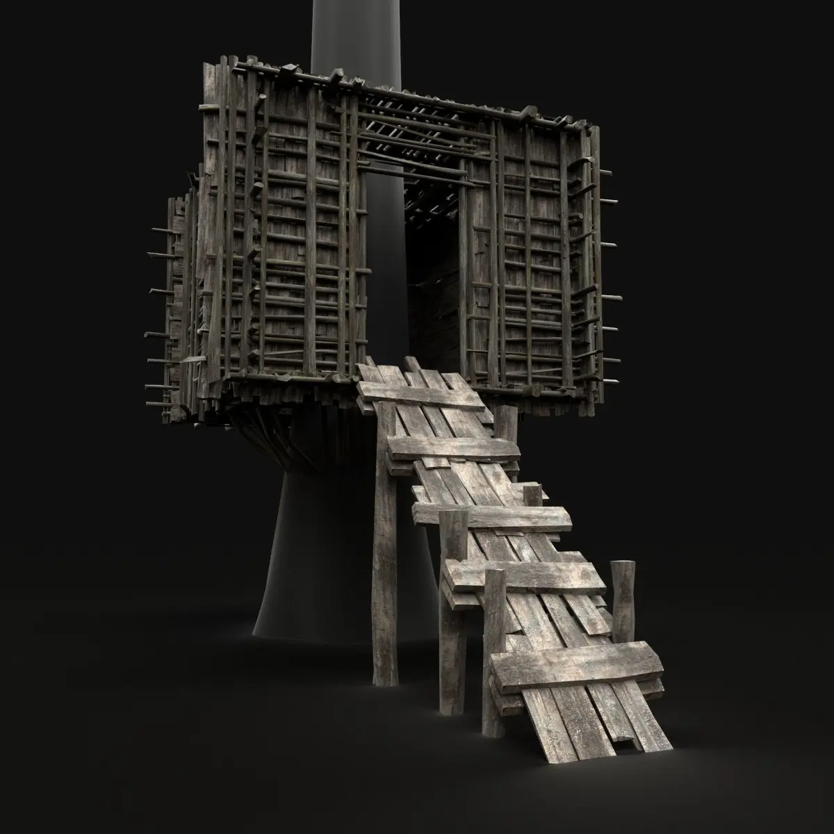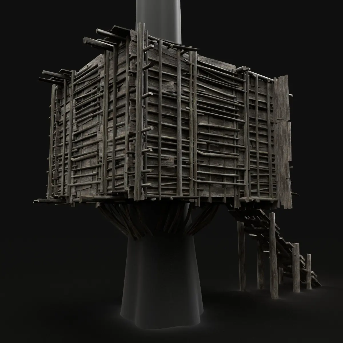 - Next gen, AAA quality, game-ready model of wooden tree platform house.