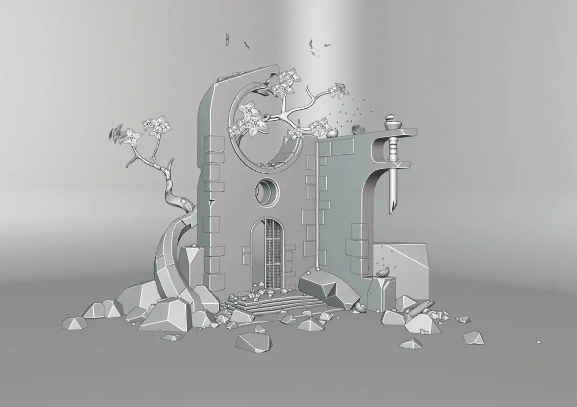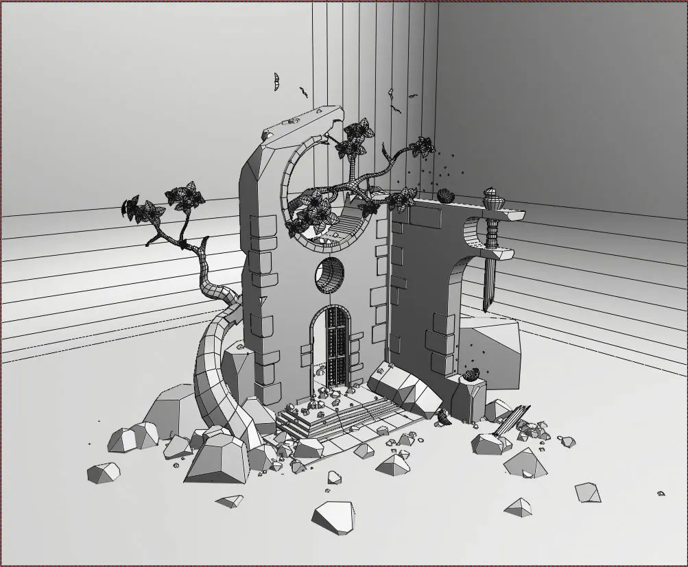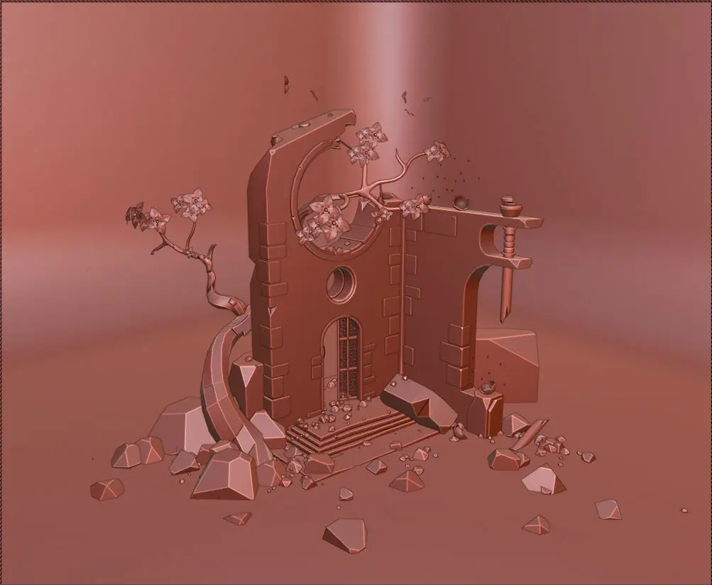 Blender scene Tree_RuinsMade in Blender 2.82Used addon Scatter for ground rock,addon is free by the way.Everything is modular.
