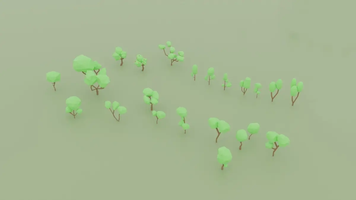 A low poly asset pack of Trees, Plants, Terrain, Rocks to add to your existing polygonal style game.