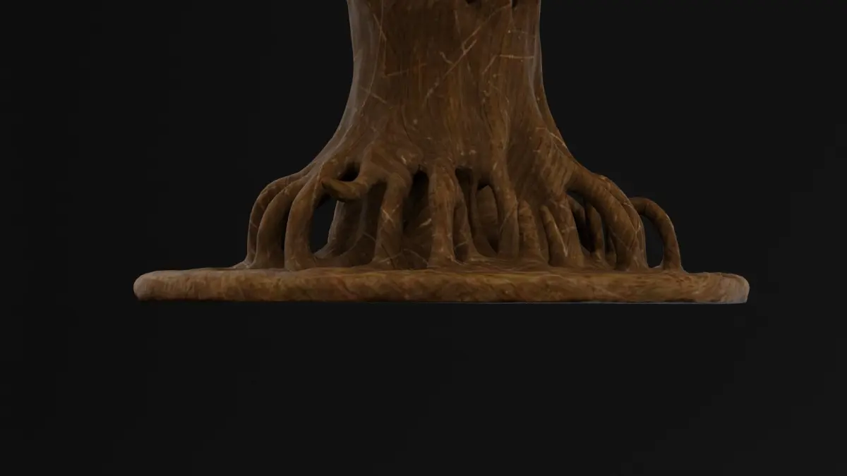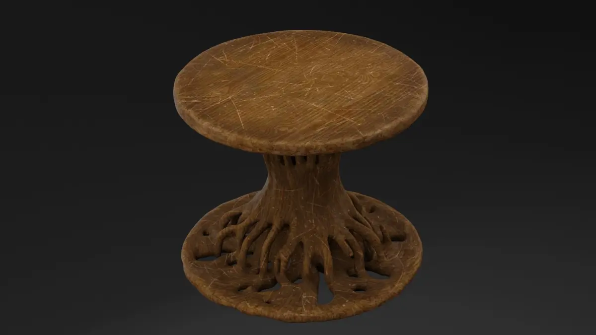 This 3D model features a Tree Table, designed with a natural, organic esthetic that blends the beauty of nature with functional furniture. The table's base resembles a tree trunk, with detailed bark textures and branches extending outward to form the table's legs. The tabletop is smooth and polished, offering a striking contrast to the rugged, textured base. Available in BLEND, OBJ, and DUF formats, this high-poly model with photorealistic textures is perfect for nature-inspired, rustic, or fantasy-themed scenes.