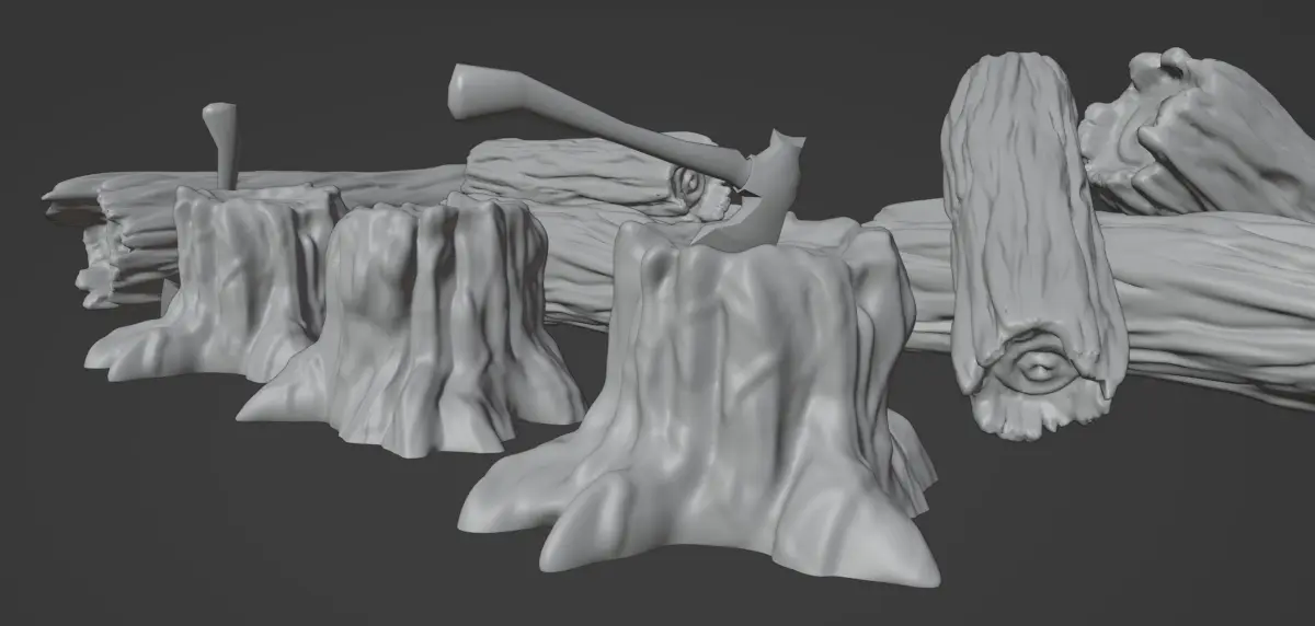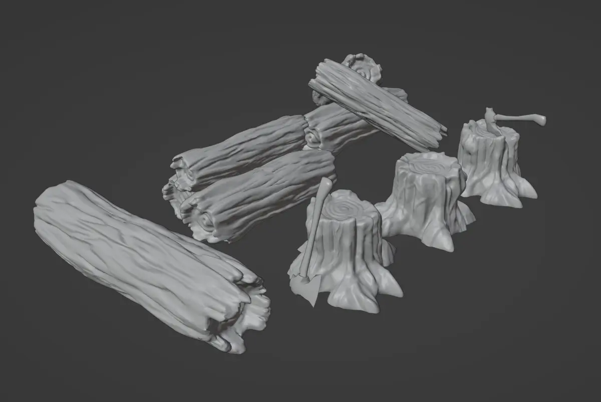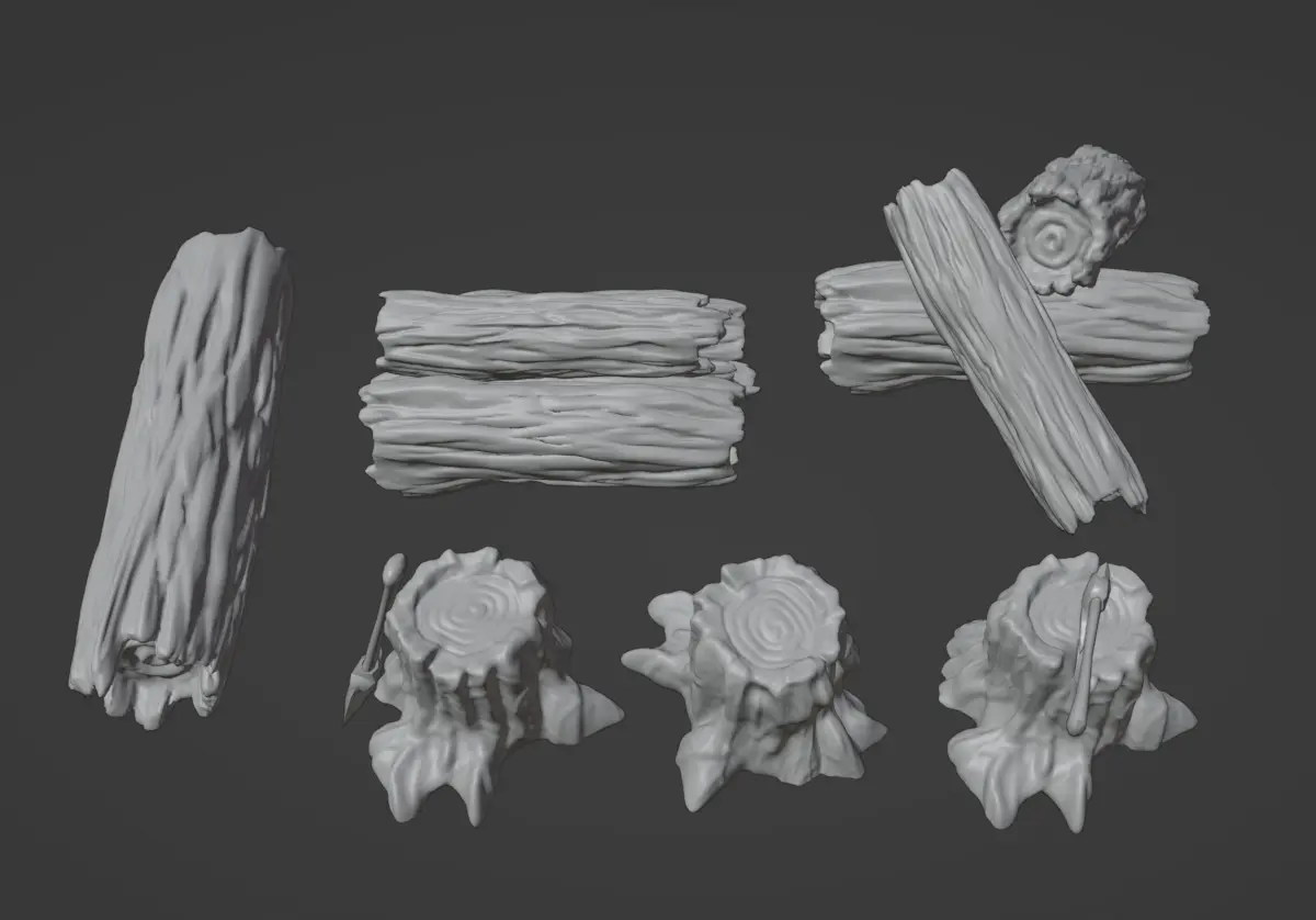 I've sculpted several tree trunk models and logs for decorating your miniature gaming scenes or dioramas.
