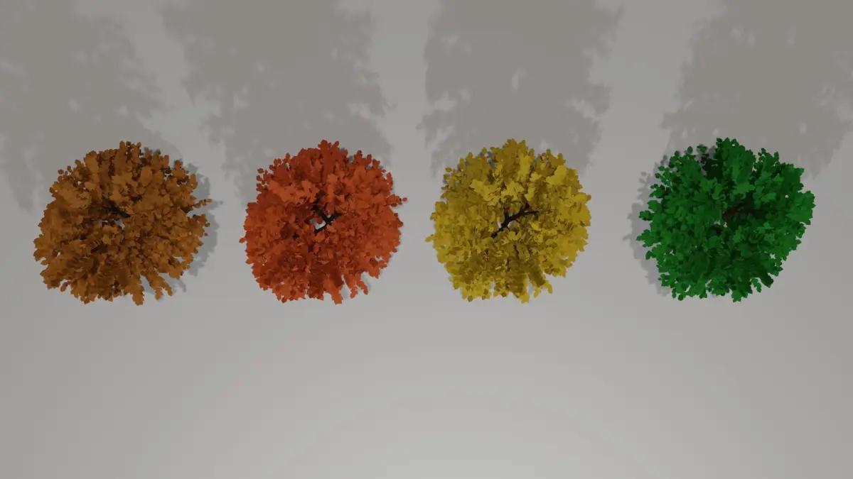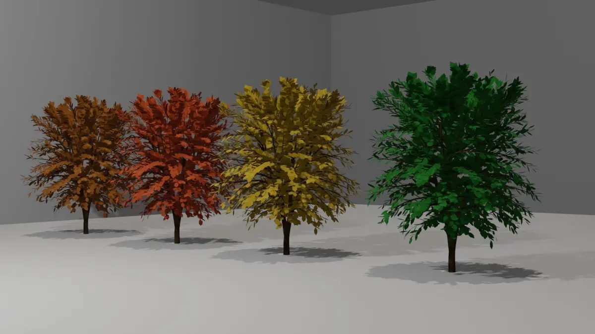 Realistic 3d model of Trees in a different colors.