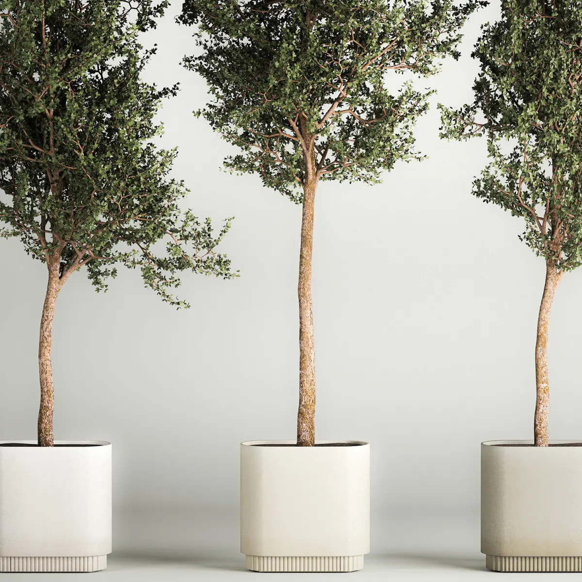 A collection of trees in concrete vases and pots for interior and exterior decor.Plants for landscape design. Trees for the street, public areas and shopping center, cafe and restaurant decor.Concrete, pot, flowerpot, outdoor, decorative, stylishOlea - Olive, OliveOlive tree - Olivedecorative trees in pots, trees in flowerpots.Trees for street decoration, public areas and shopping centers, exotic trees, tropical.flowerbed, landscaping, garden, gardenTrees in pots for interior decoration, trees in flowerpots for the street.Topiary, topiary.