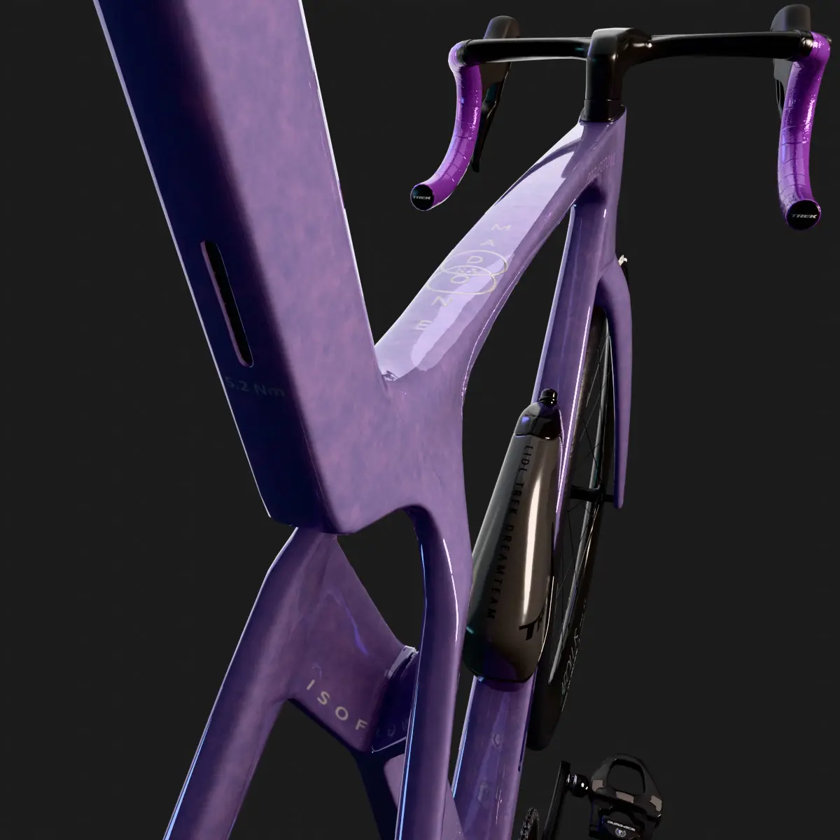 TREK MADONE SLR 9 gen 8 roadbike model made and rendered in blender, unwrapped in rizomUV, baked and textured in substance painter It consists of 34 objects. Totally it is 229k faces. It has two PBR texture sets (materials) of 4096x4096 (base color, metalness, roughness, normal, Ambient occlusion, alpha, emission, displace/height). The Trek Madone SLR 9 Gen 8 is Trek’s flagship road racing bike for 2025, designed as an all-rounder that combines the aerodynamic efficiency of a pure aero bike with the low weight and climbing prowess of a lightweight race machine. The Madone SLR 9 Gen 8 is the sole road bike used by the Lidl-Trek WorldTour team for all race scenarios—sprints, climbs, and all-round stages—demonstrating its versatility and performance at the highest level. In the 2025 Giro d’Italia, Lidl-Trek achieved remarkable success, winning at least six stages.