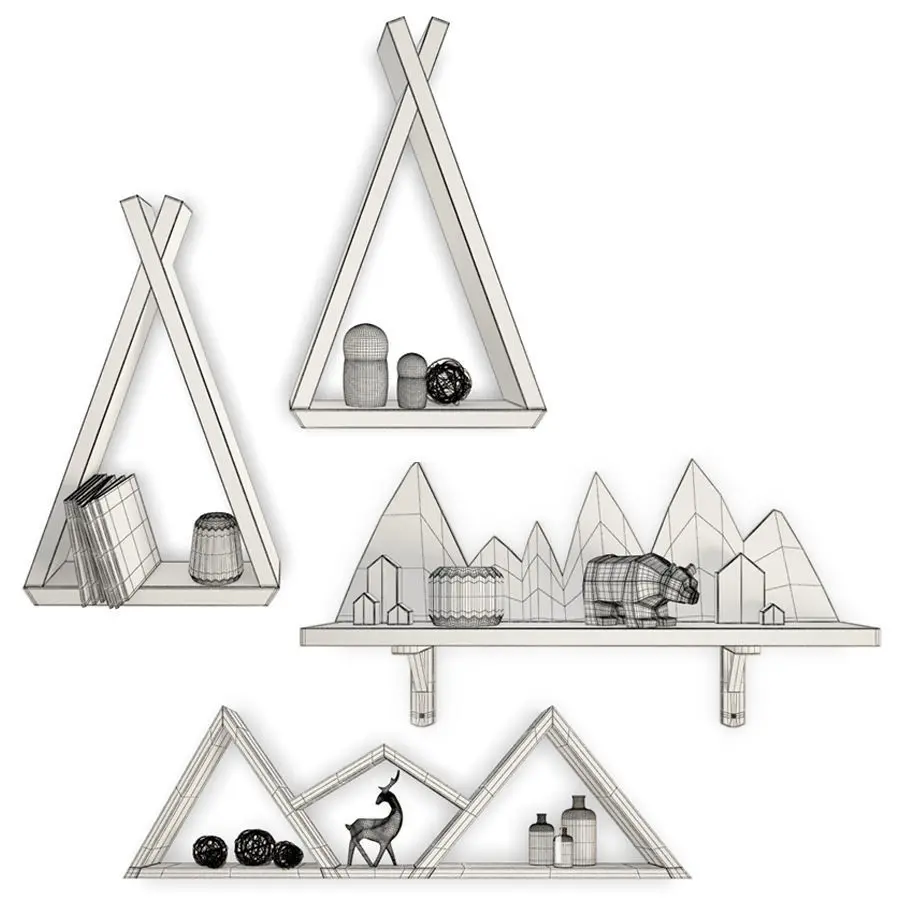 - Wooden Teepee shelf and books: W33.8 x D16.7 x H54.1 cm