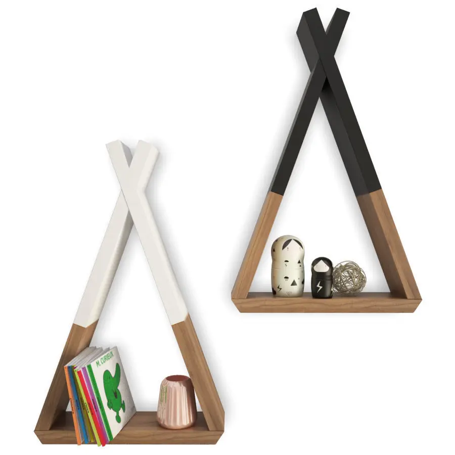 These ethnically styled wooden shelves will easily adapt to playful and original bedroom.
