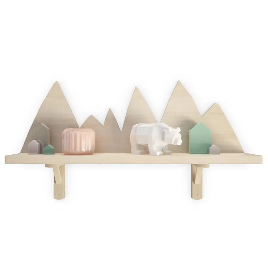 - Light wood moutains Shelf and bear: W53.2 x D11.3 x H27.9 cm