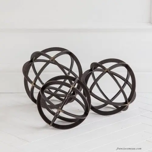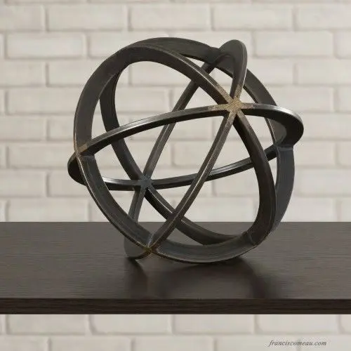 Inspired by the Tehachapi Loop – the world-famous spiral of railroad running through Tehachapi Pass in south-central California – this decorative object is an excellent finish touch to shelves, side tables, and any other space that calls for a little extra something. This orb’s metal frame, composed of a series of overlapping circles, is awash in a black finish, showcasing an antique bronze finish at points where the loops join.