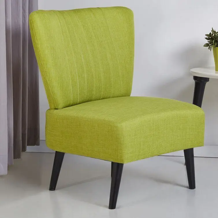 - A stylish spare seat, reading nook chair, you name it, this slipper chair invites you to kick back wherever it lives. Its clean, Euro look and mid-century legs bring a relaxed, modern feel to your home. The solid wood frame is wrapped in polyester blend upholstery, complete with channel-stitch details, and padded with foam fill. Tapered wood legs, finished in black, round out the design below. Plus, this chair’s armless seatback leaves plenty of elbow room for existing furniture.