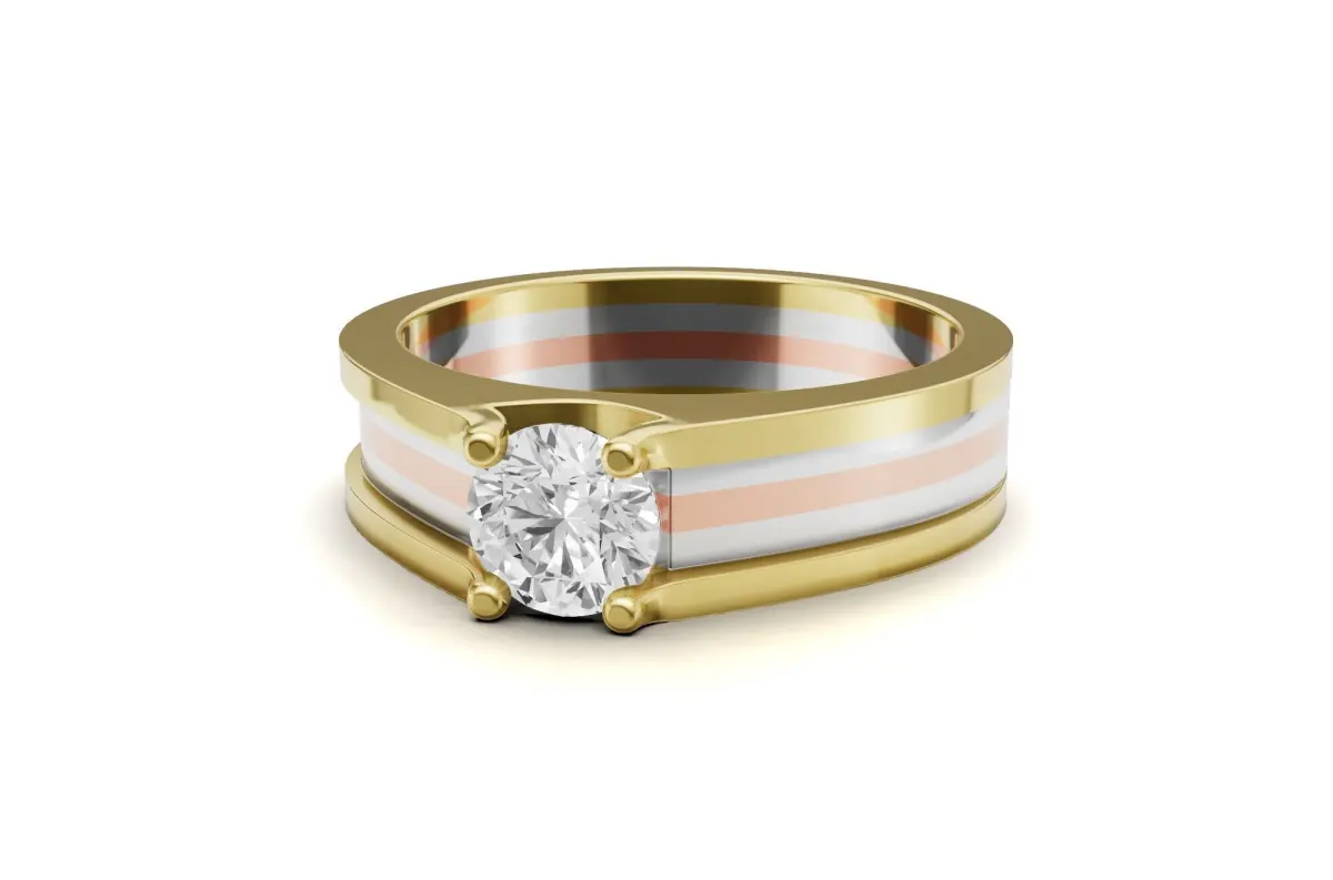Tri-Color Solitaire Mens Engagement Ring Uniq Look 3D print model