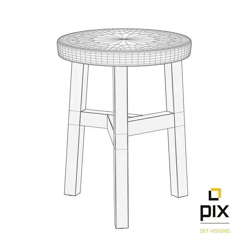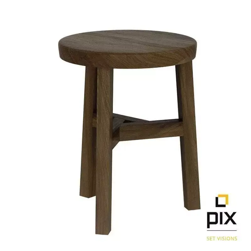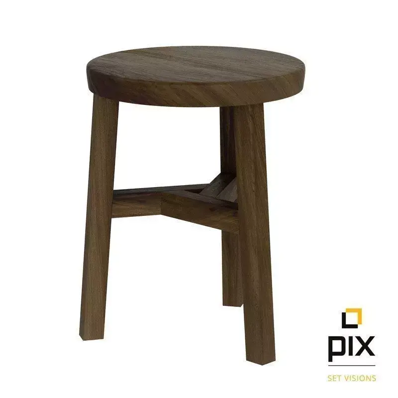 Fully textured, realistic model of a wooden, 3 legged foot stool.