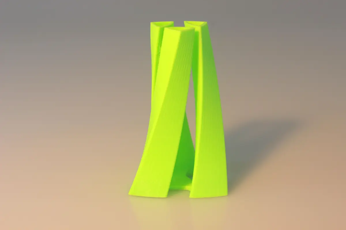 This form is a Tri-Oval divided into three seperate Tri-Oval tubes with a 60 degree twist and a reduction in size along its height.