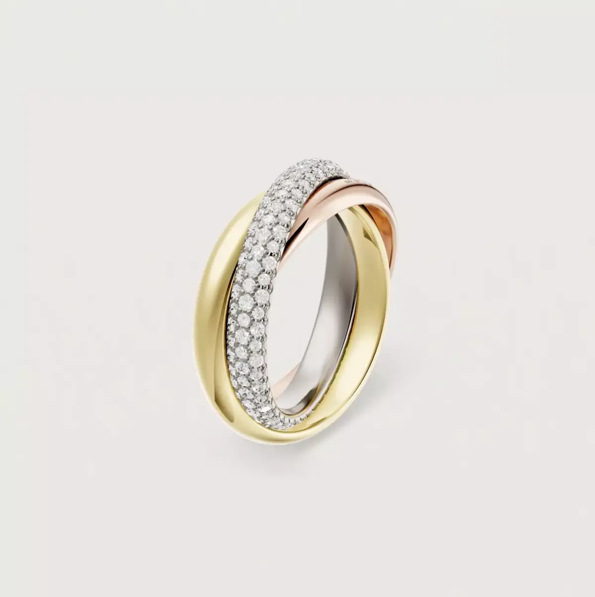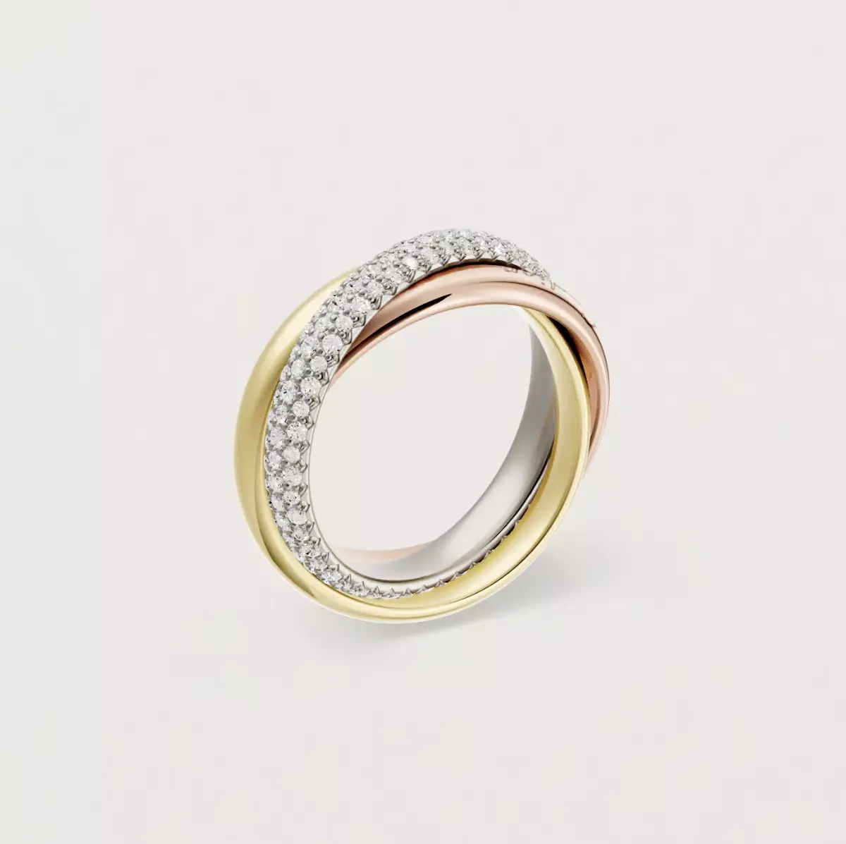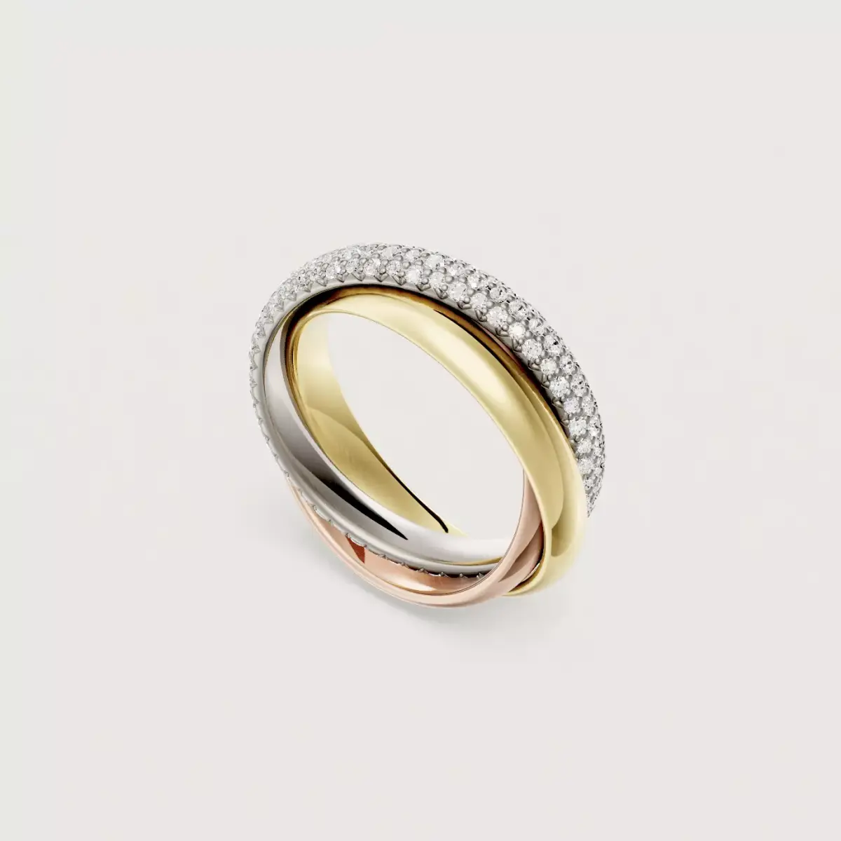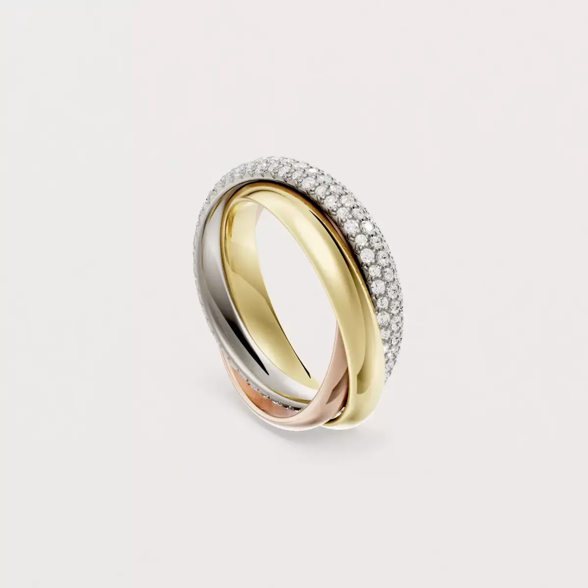 Exact replica of the timeless piece, the large version with diamond paving of the TRINITY ring.