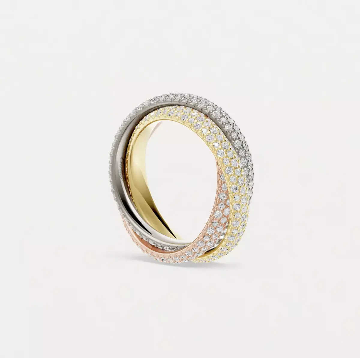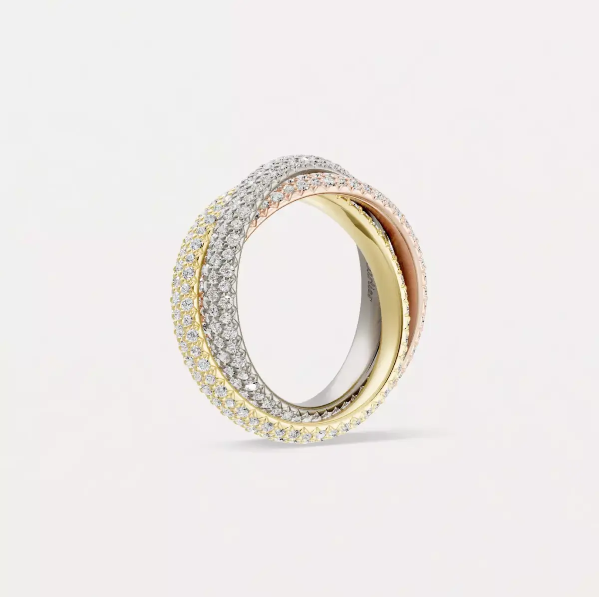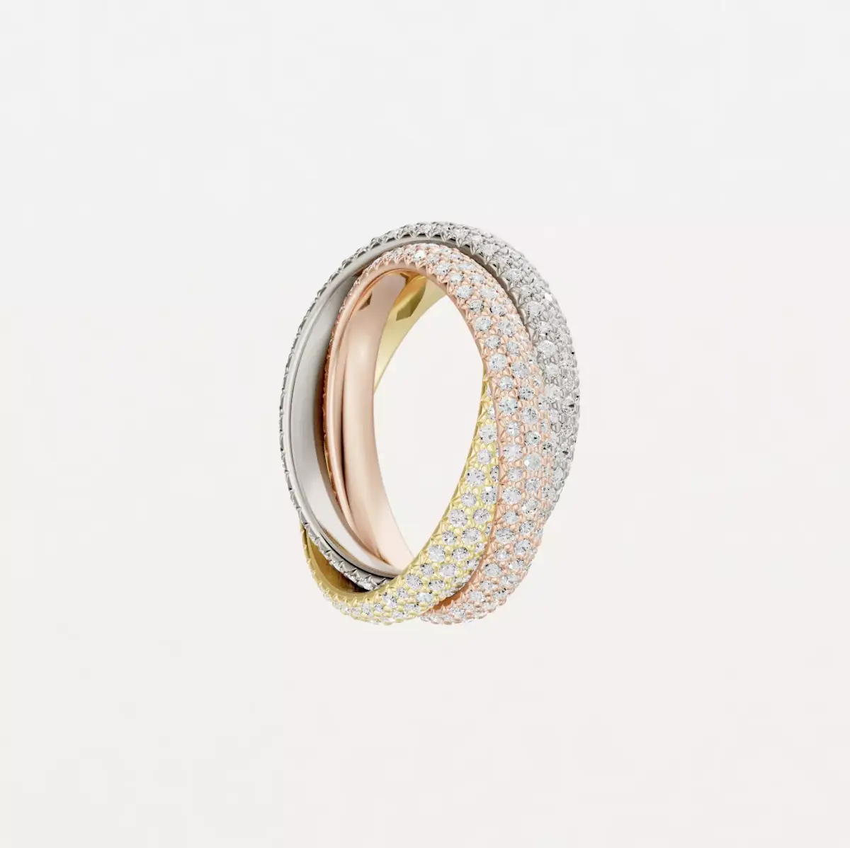 Exact replica of the timeless piece, the classic full diamond paving version of the TRINITY ring.