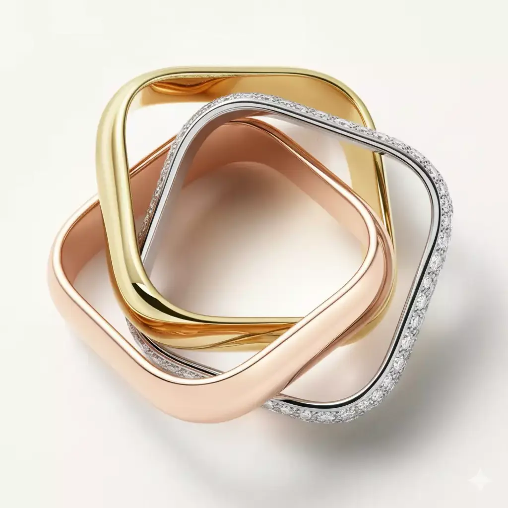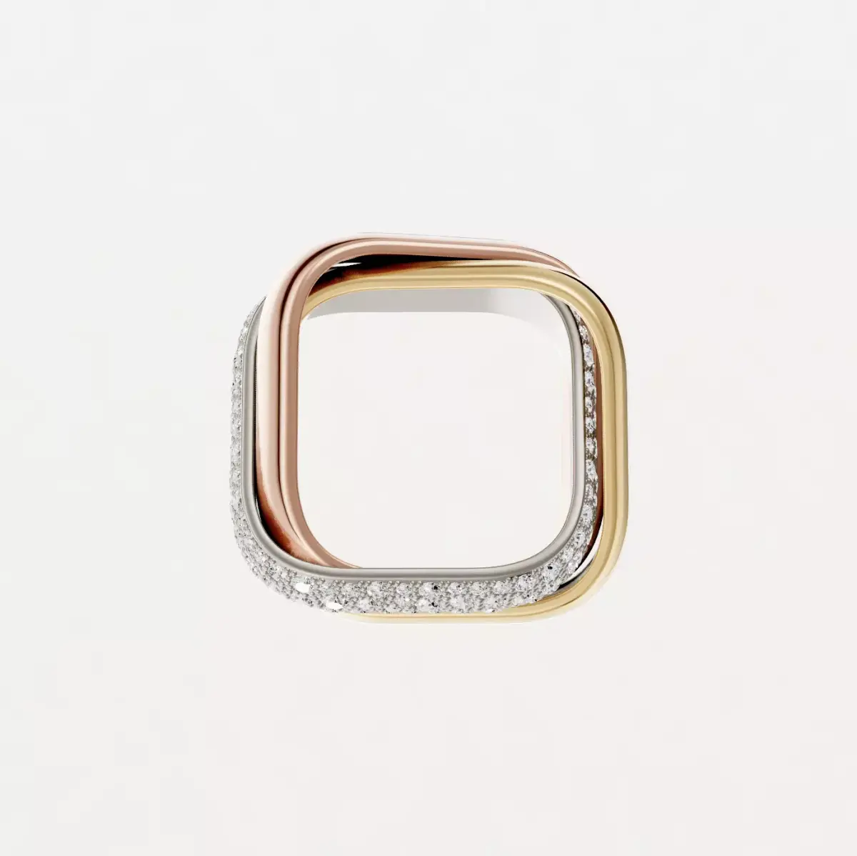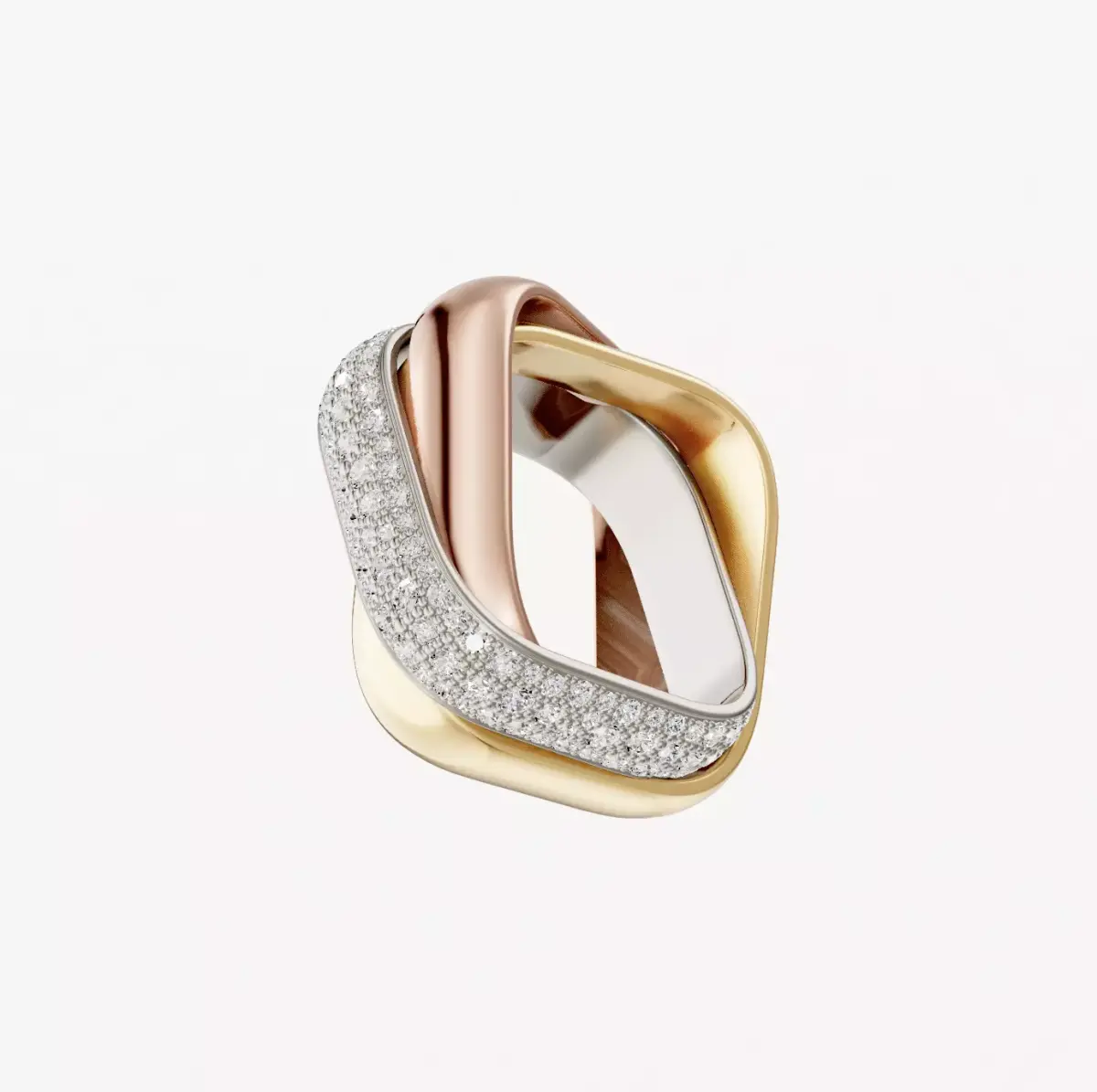 Exact replica of the timeless piece, the coussin large with semi diamond paving version of the TRINITY ring.