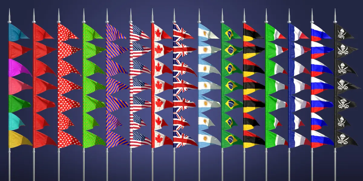 A collection of 3D simulateded High quality models of triangle flags, with 3 strenght of wind