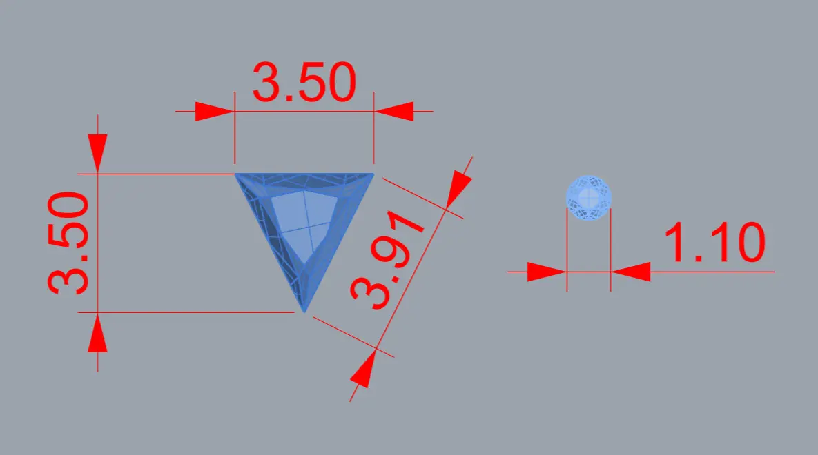 ○ Stone Details:– Center stone: Triangle cut (dimensions available in preview images)– Side stones: 1.1 mm round diamonds