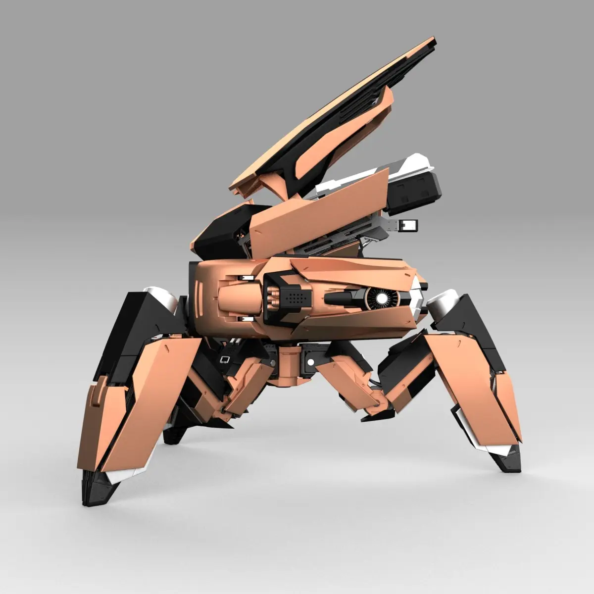 A functional based robot built with internal components and animated opening head case with detachable units. Fully rigged with IK and FK. Rendered with Vray.
