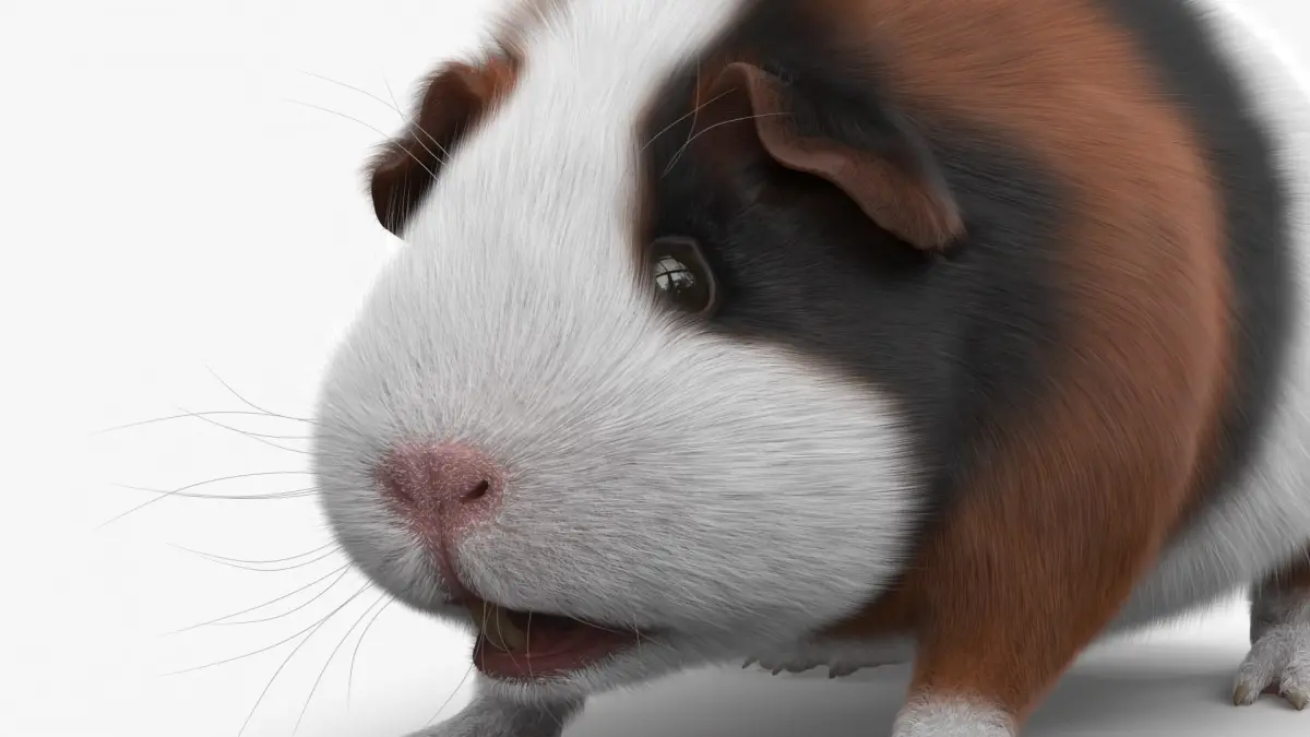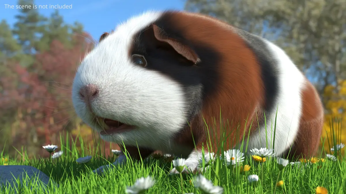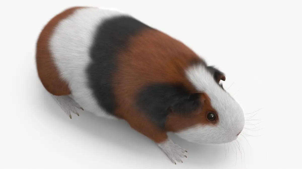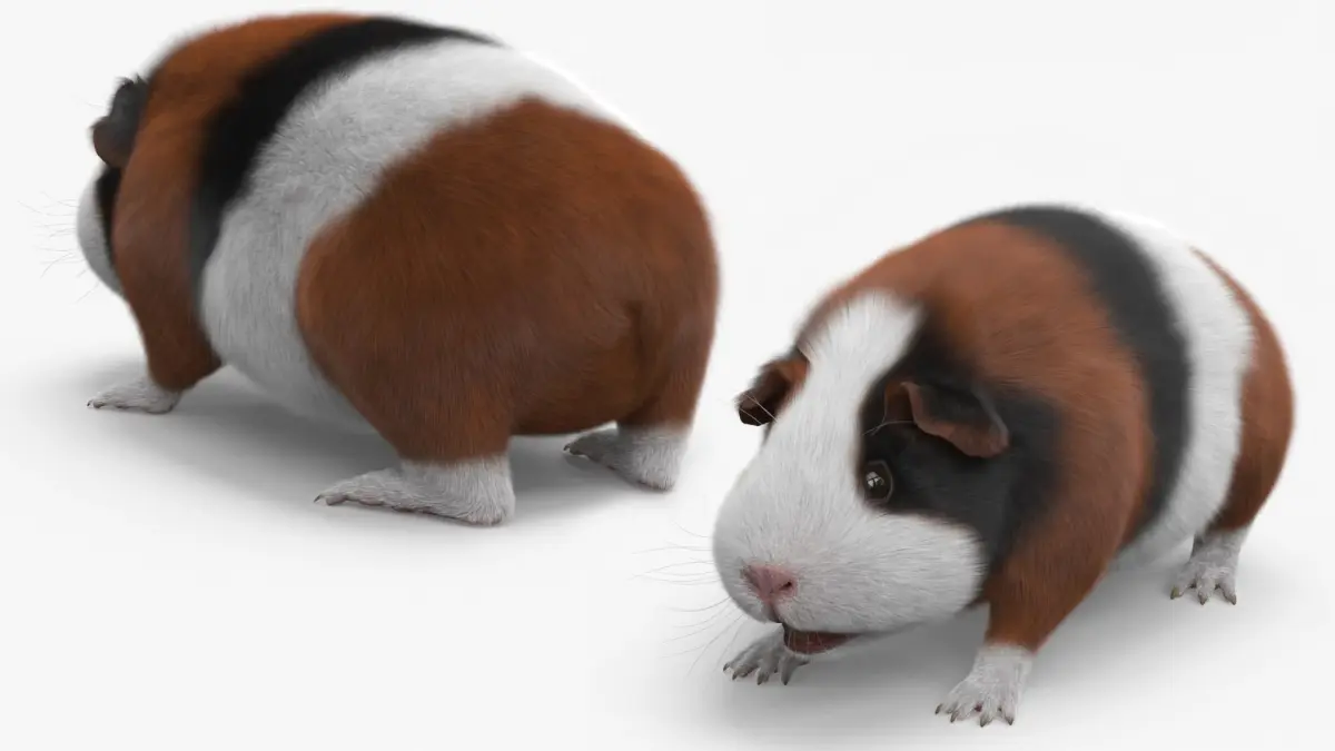 Tricolor Guinea Pig Short Hair Black Brown White Fur is a three-dimensional model of guinea pig (cavy, domestic guinea pig or cavia porcellus), that is a small domesticated rodent known for its gentle nature and social behavior.