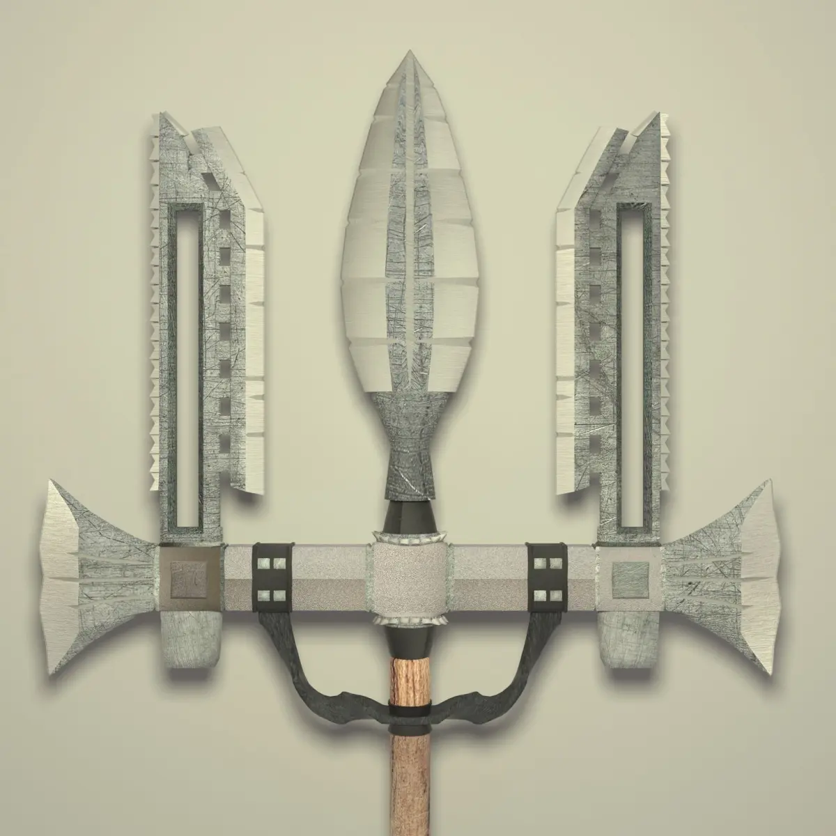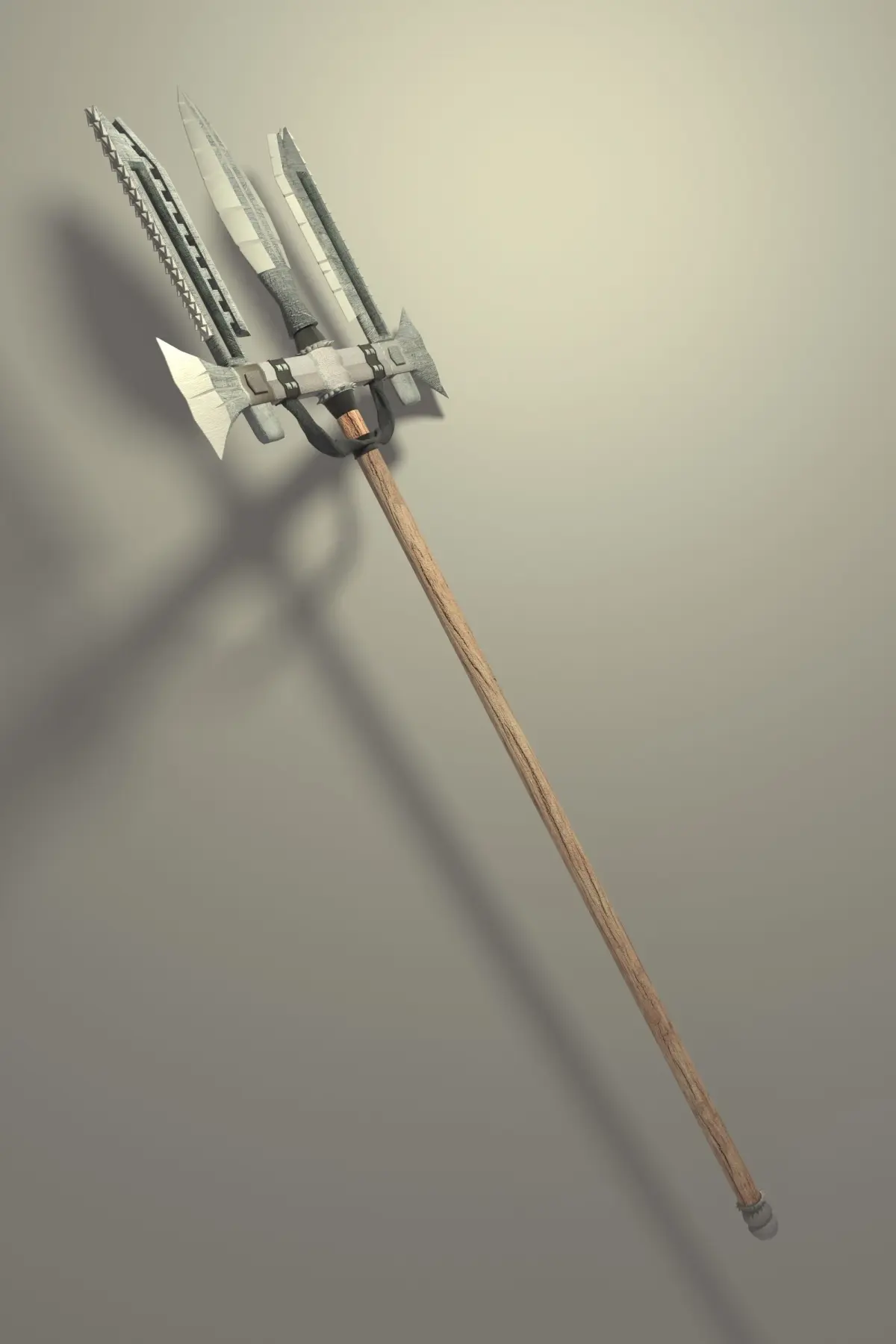 Low-Poly Trident with texture Measure (mm):X: 74,346Y: 2168,054Z: 846,971