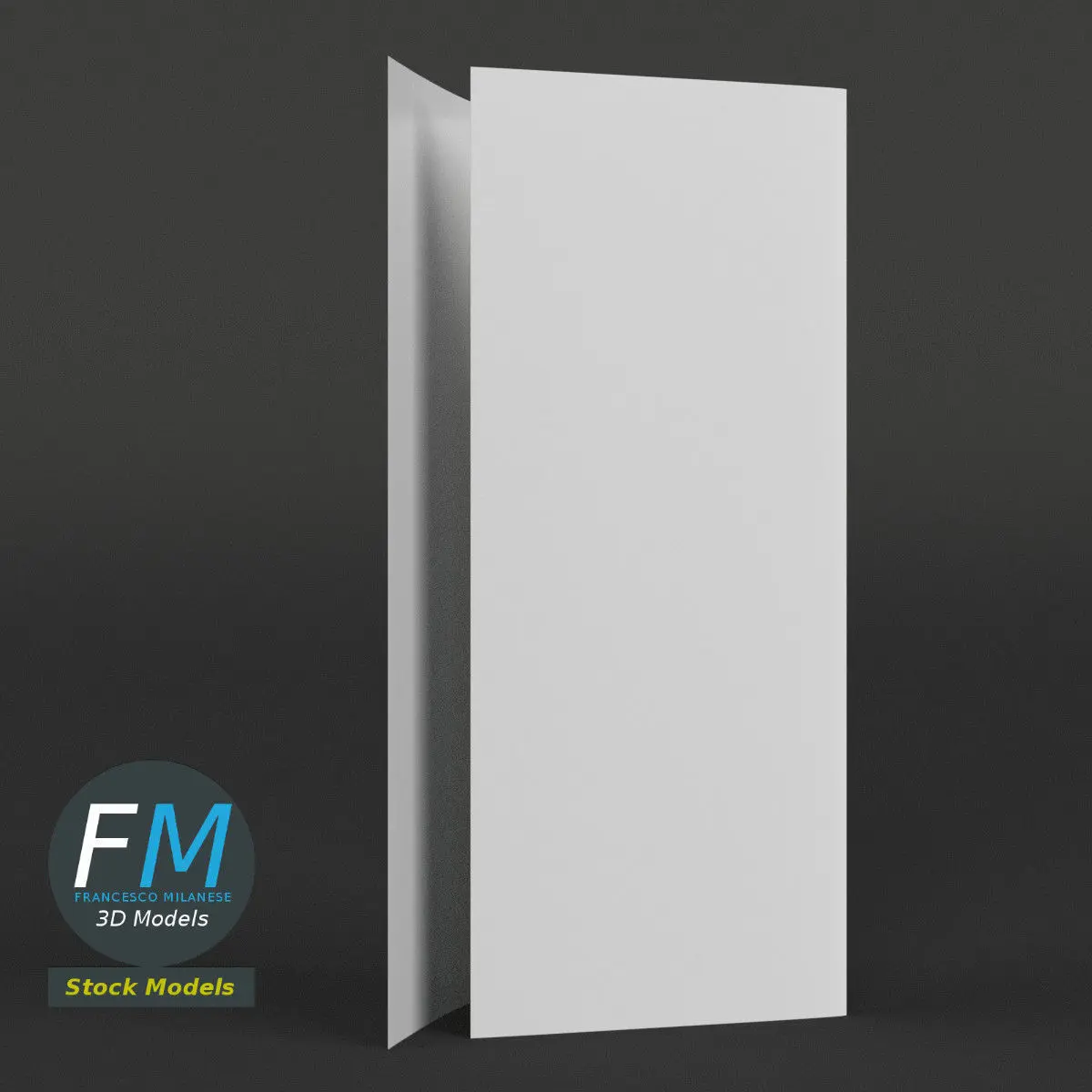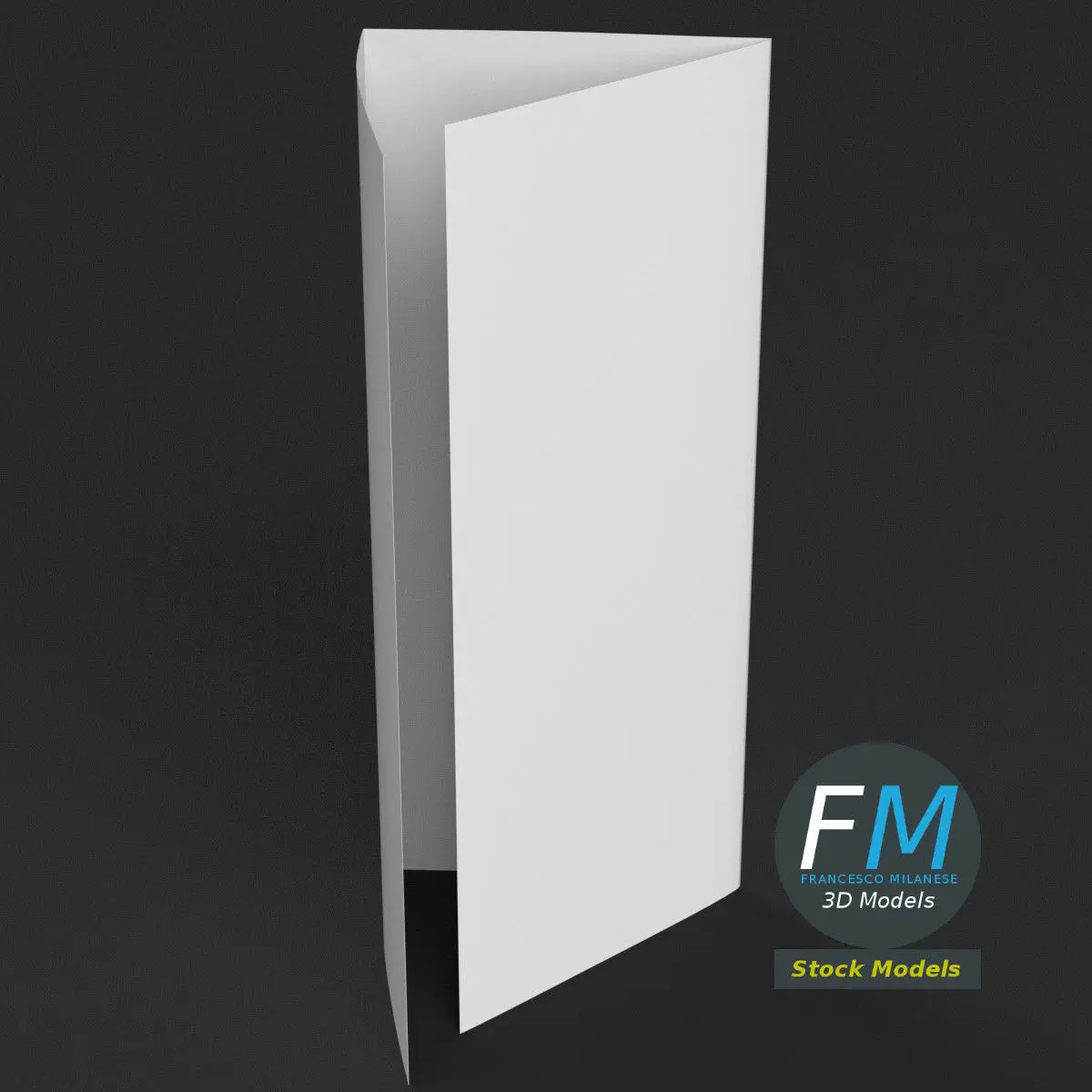 Trifold mockup half open 3D Model. Perfect for advertising, mockups, etc. Production-ready 3D Model, with PBR materials, textures, non overlapping UV Layout map provided in the package.