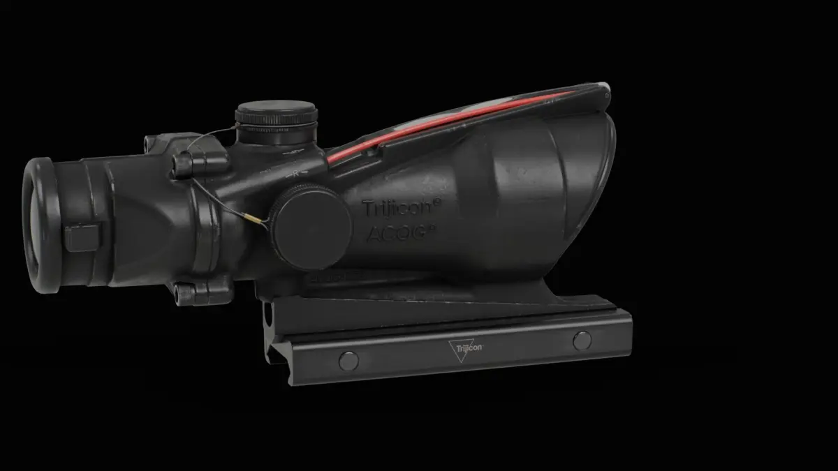 This is a real-time optimized 3D asset representing the Trijicon ACOG 4x32 combat optic, widely used on modern military rifles. The model is built to real-world proportions, ready for integration into games, simulations, or virtual production pipelines.