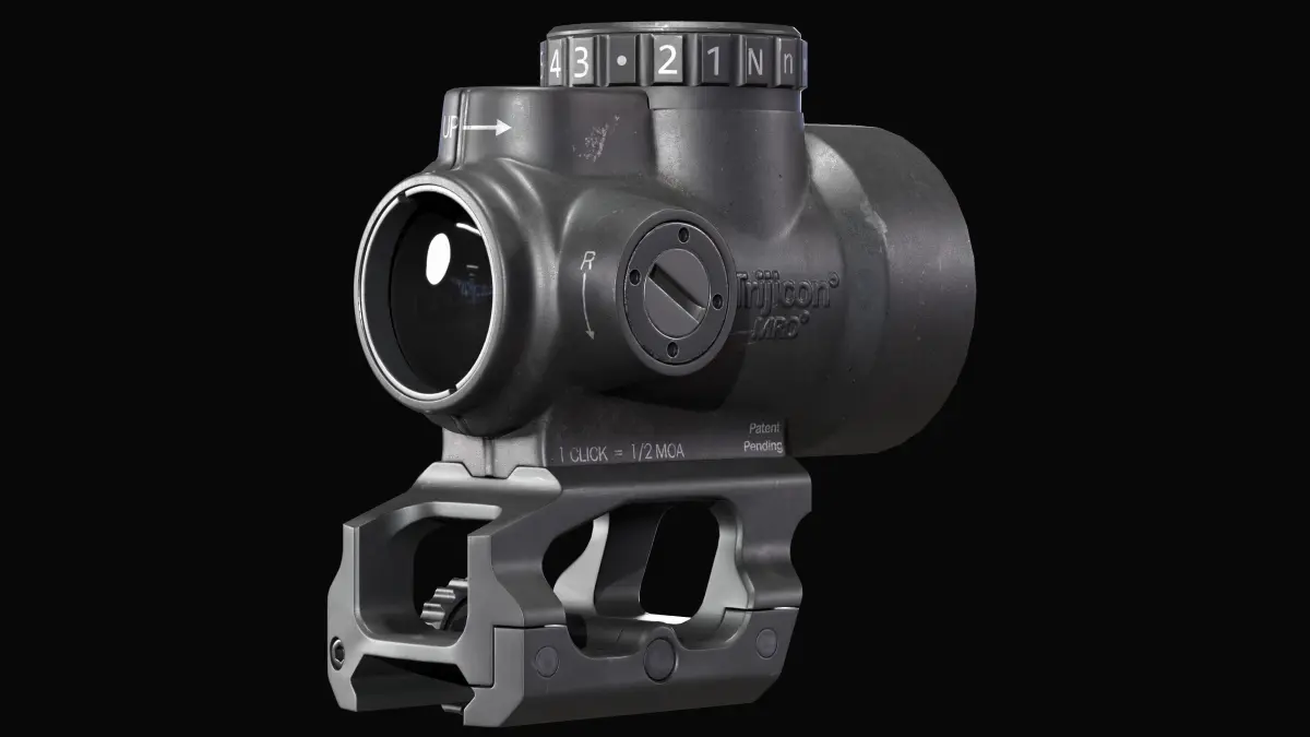 Game-ready model of the Trijicon MRO sight. The model contains mesh and textures for the aiming dot but I recommend creating your own material.