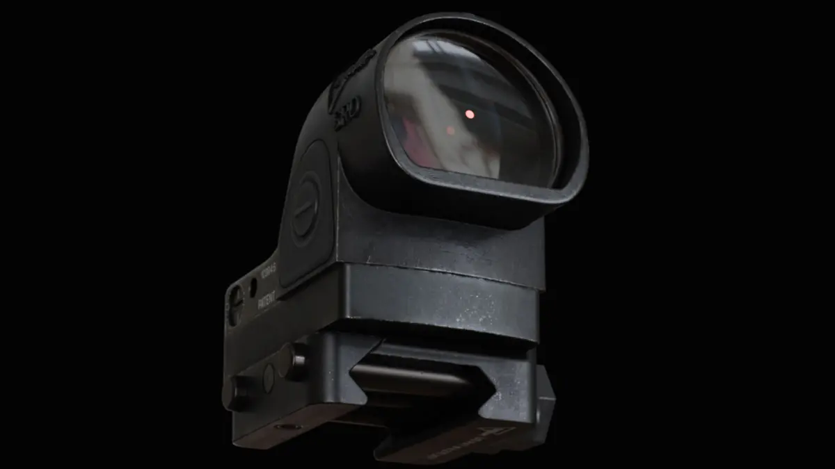 The Trijicon Specialized Reflex Optic (SRO) 2.5 MOA Adjustable LED red dot is the most popular reticle size and can be used in a wide variety of pistol and other shooting applications such as target shooting or plinking. The wide field of view and clean, crisp dot makes it easy for users to find and track the dot in both target and competitive shooting applications, helping improve shooting accuracy and speed. The package includes the optic, a standard Picatinny mount, and an additional 45-degree angled mount as a bonus. The model is built to real-world proportions, ready for integration into games, simulations, or virtual production pipelines.