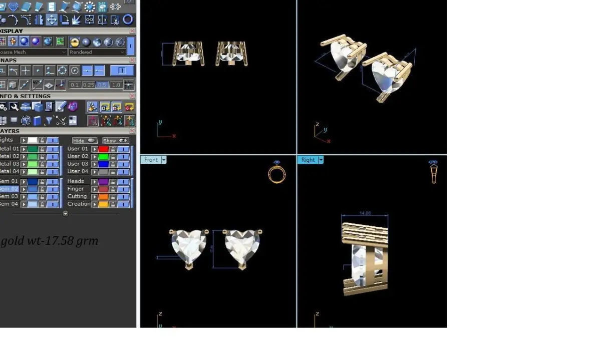 Design Master11provides solutions for cad, render, catalogue and model view for diamond jewellery designs. If you want any changes in this design please contact us, I will get back to you within 5-8 hours. This type of earring maybe called solitaire earring, stud earring, drop earring or halo earring. You can change the stone to round, emerald, heart, pear, princess so the earring will be called as round tone earring, emerald earring, heart earring, pear earring, and princess earring respectively.I have uploaded a render image of the product but you can change the color of stone as per your convenience. For example, if you don’t like the diamond earring, so you can add a red stone for the ruby earring, green stone for the emerald earring, yellow stone for citrin earring, blue stone for the sapphire earring. This is a complete fashion earring which you can wear in your everyday life. You can check some of the most famous earring: oval earring and flower earring