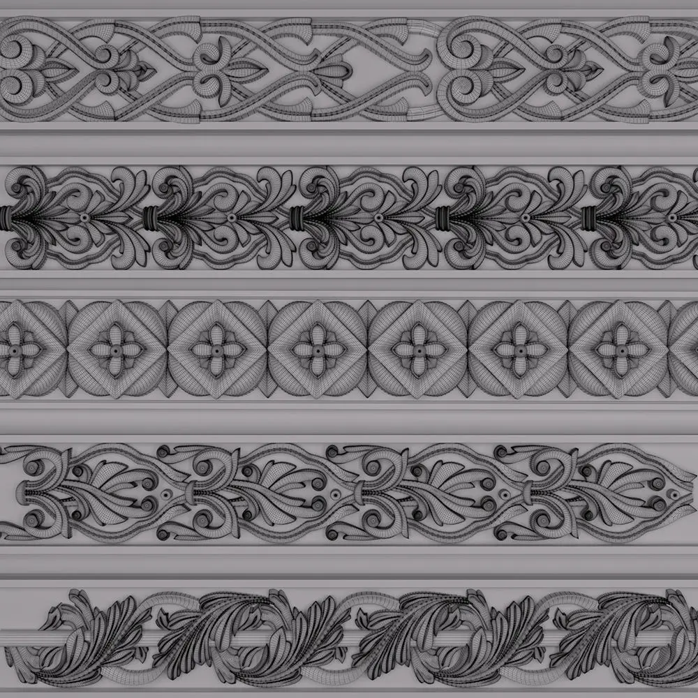 This Product include 5 TrimOrnaments for use any 3d software (3dmax, maya, blender, C4D, ...)I've made three previews for 3dmodels and Trim Point in previews too.