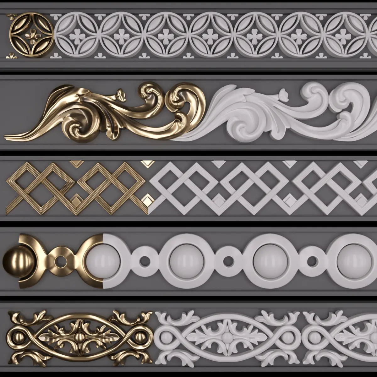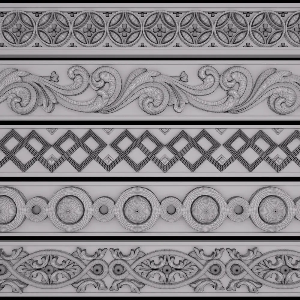 This Product include 5 TrimOrnaments for use any 3d software (3dmax, maya, blender, C4D, ...) I've made three previews for 3dmodels and Trim Point in previews too.