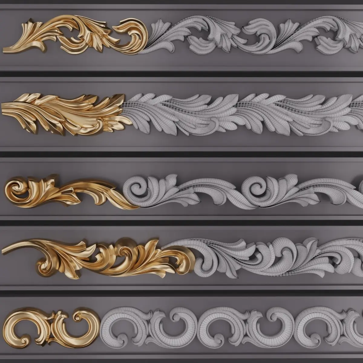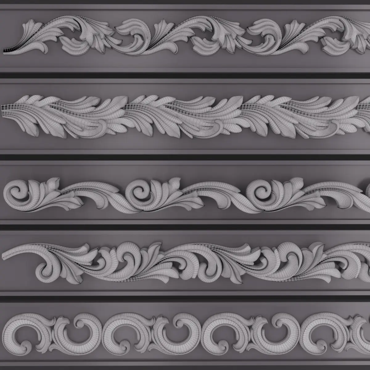 This Product include 5 TrimOrnaments for use any 3d software (3dmax, maya, blender, C4D, ...) I've made three previews for 3dmodels and Trim Point in previews too.