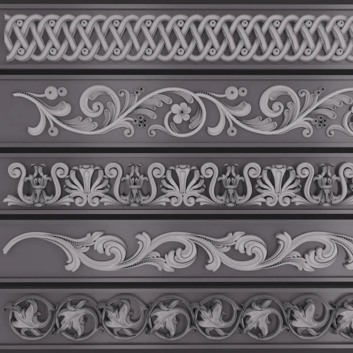 This Product include 5 TrimOrnaments for use any 3d software (3dmax, maya, blender, C4D, ...) I've made three previews for 3dmodels and Trim Point in previews too.