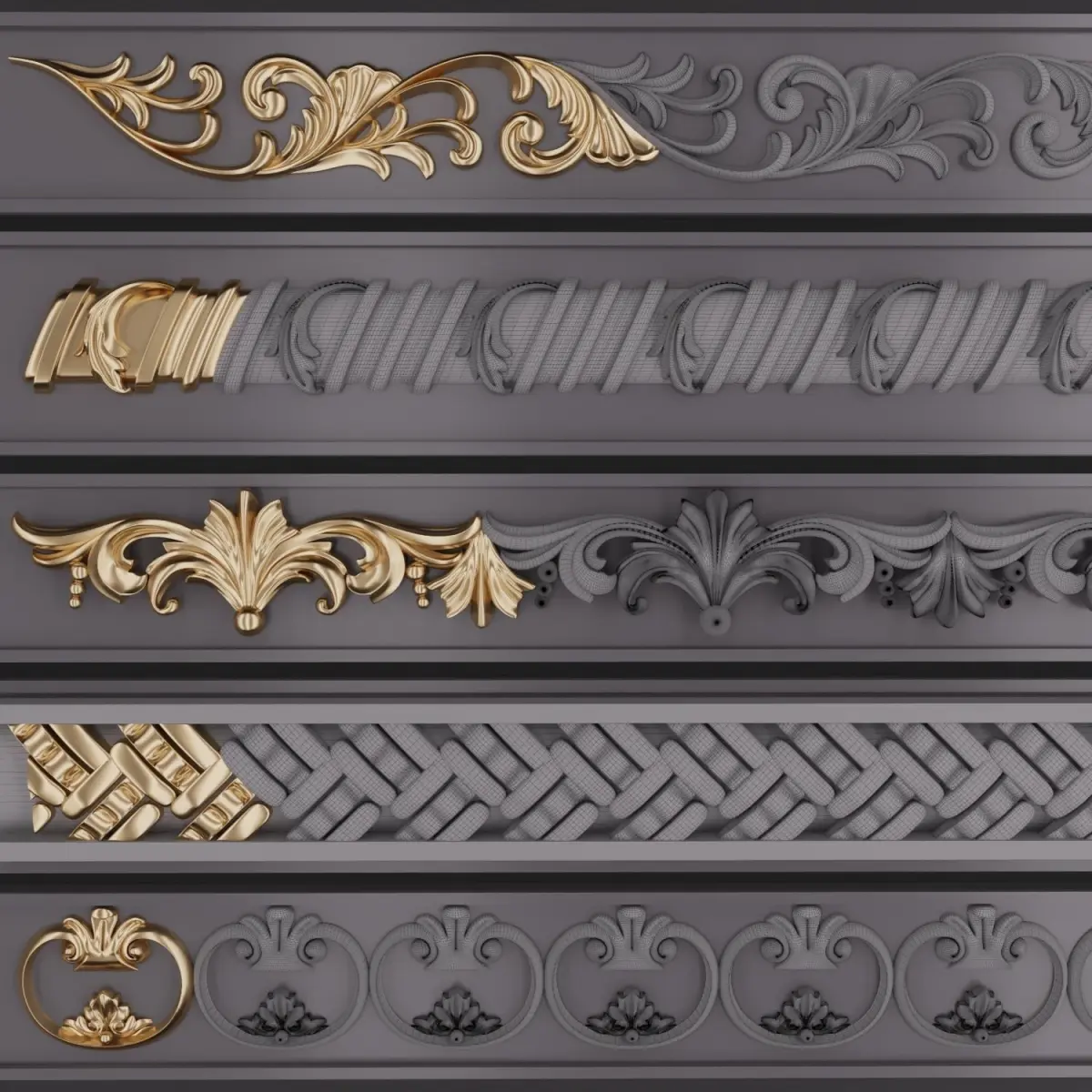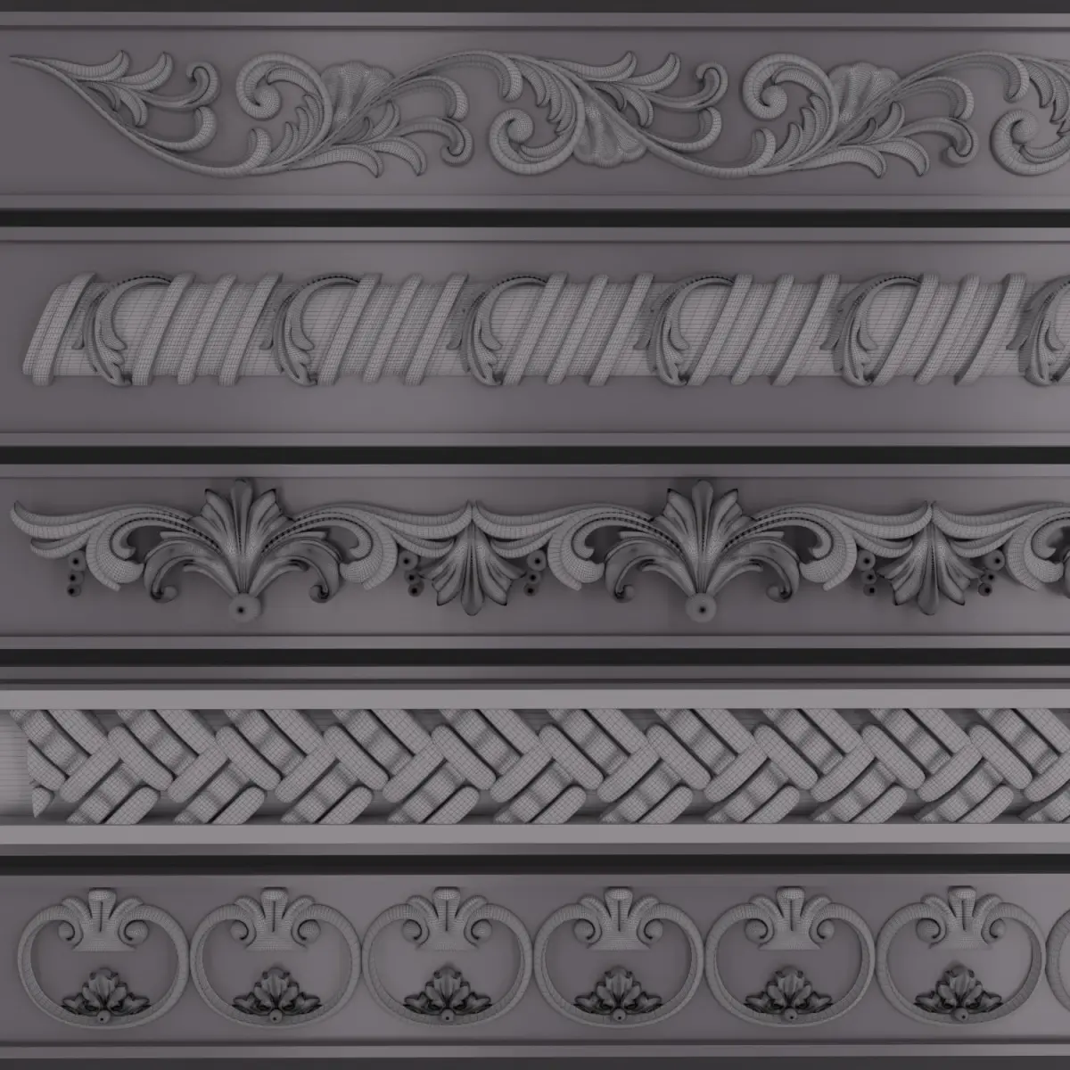 This Product include 5 TrimOrnaments for use any 3d software (3dmax, maya, blender, C4D, ...) I've made three previews for 3dmodels and Trim Point in previews too.