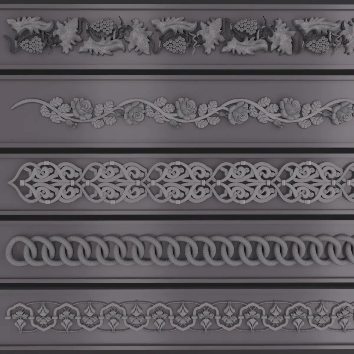 This Product include 5 TrimOrnaments for use any 3d software (3dmax, maya, blender, C4D, ...) I've made three previews for 3dmodels and Trim Point in previews too.