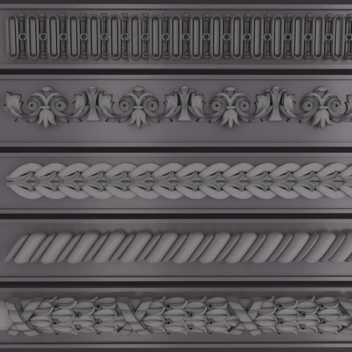 This Product include 5 TrimOrnaments for use any 3d software (3dmax, maya, blender, C4D, ...) I've made three previews for 3dmodels and Trim Point in previews too.