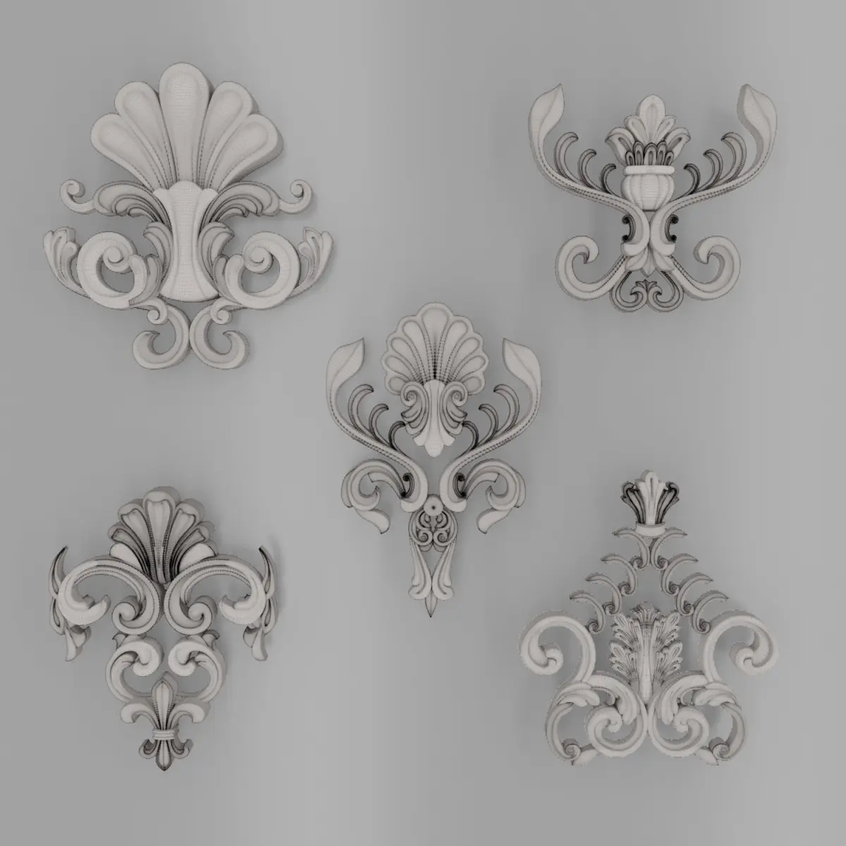 This Product includes 5 Trim Ornaments for use any 3d software (3dmax, maya, blender, C4D, ...) I've made two previews for 3dmodels and Trim Point in previews too.